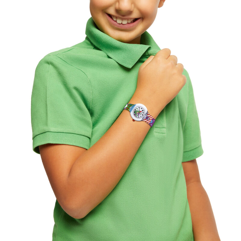Gender: Kid – Movement: Quartz – WR: 5 ATM – Glass: Plastic – Case: 28 mm – Packaging: Official Box – Product Type: Wristwatch – Case Material: Polycarbonate – Strap Material: Silicone – Functions: Only Time
