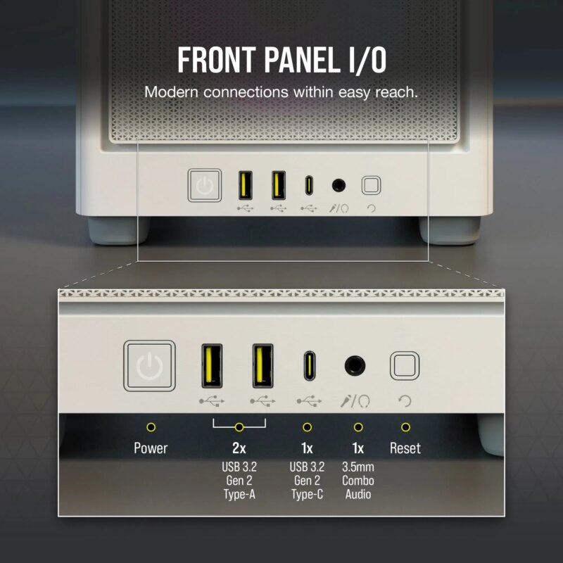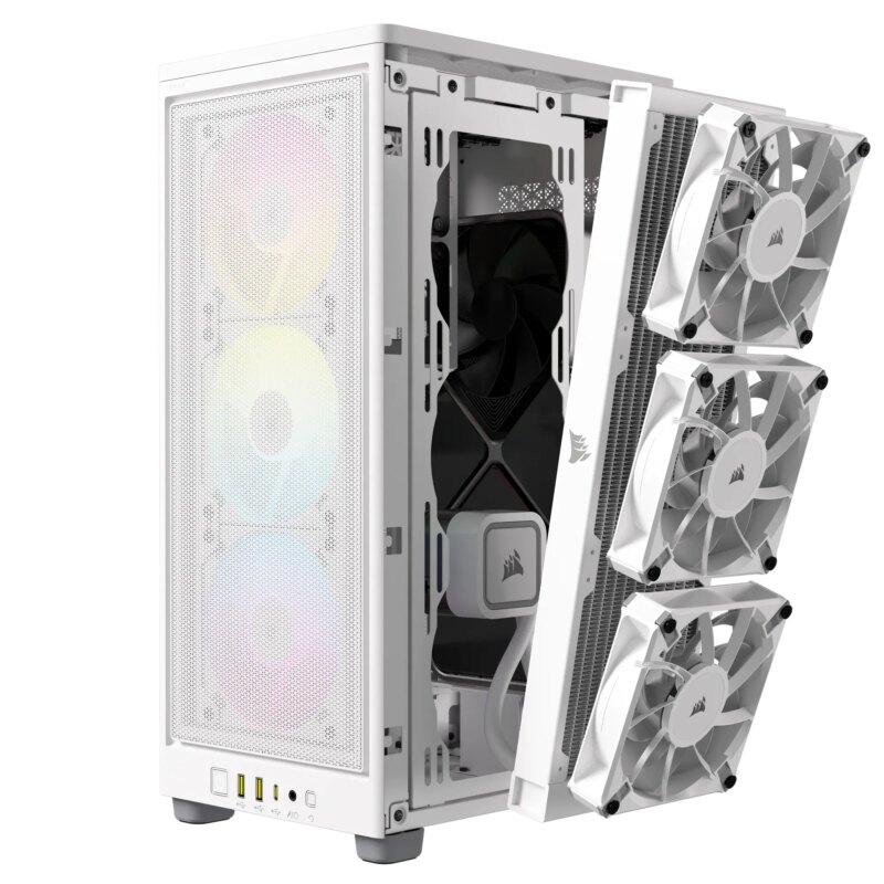 iCUE 2000D RGB AIRFLOW White Mini-ITX PC Case; 3x 2.5” Drive Bays; Up to 360mm Radiator compatible; 2x 120mm fan incl