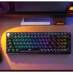 - Immerse yourself in vibrant, per-key RGB lighting, creating dynamic effects that react to your gameplay, enhancing your gaming keyboard experience.