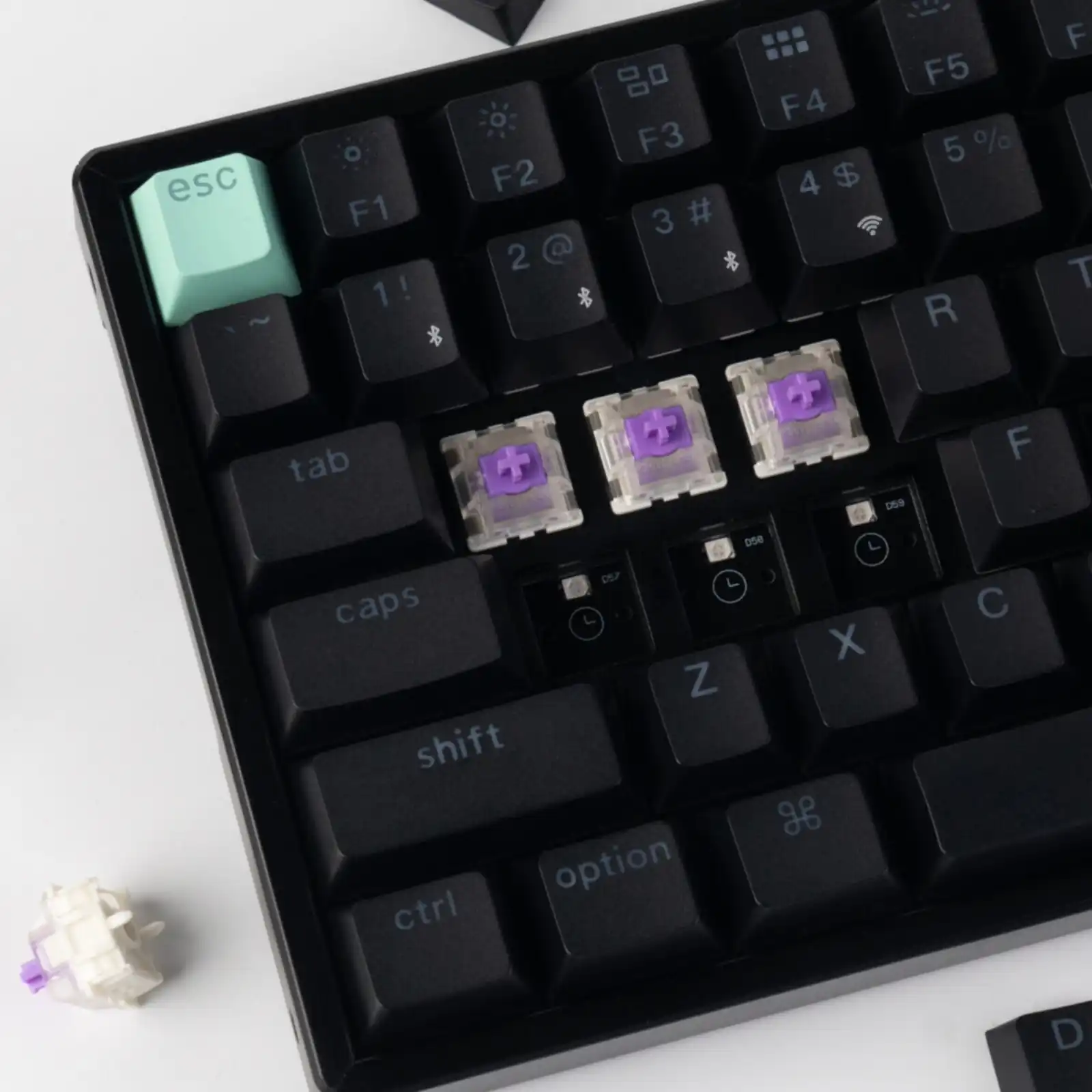 - Includes hot-swappable sockets, allowing easy switch changes without soldering.