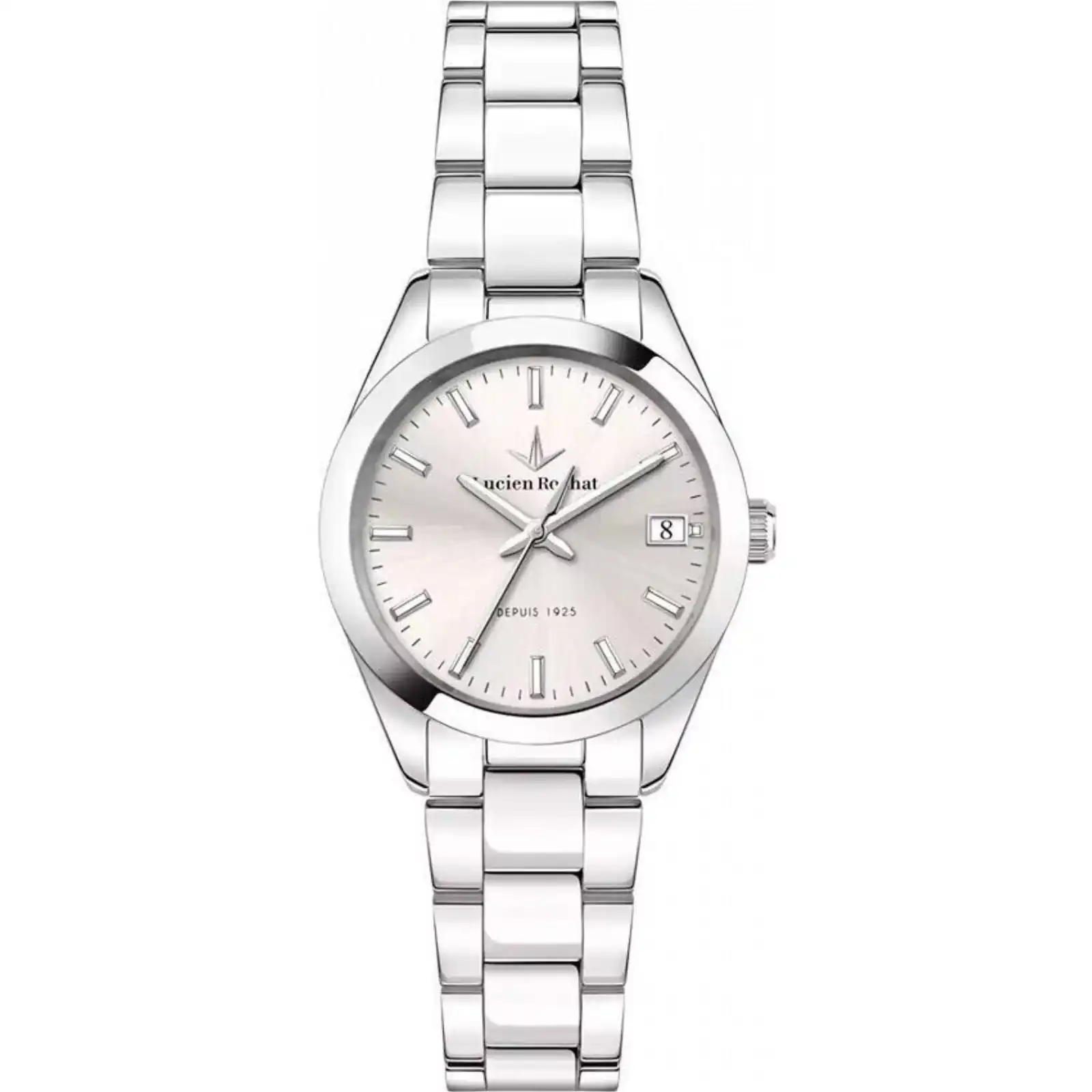 Case: 32 mm – Functions: Date – Material: Silver – Product Type: Wristwatch – Movement: Quartz – Gender: Lady