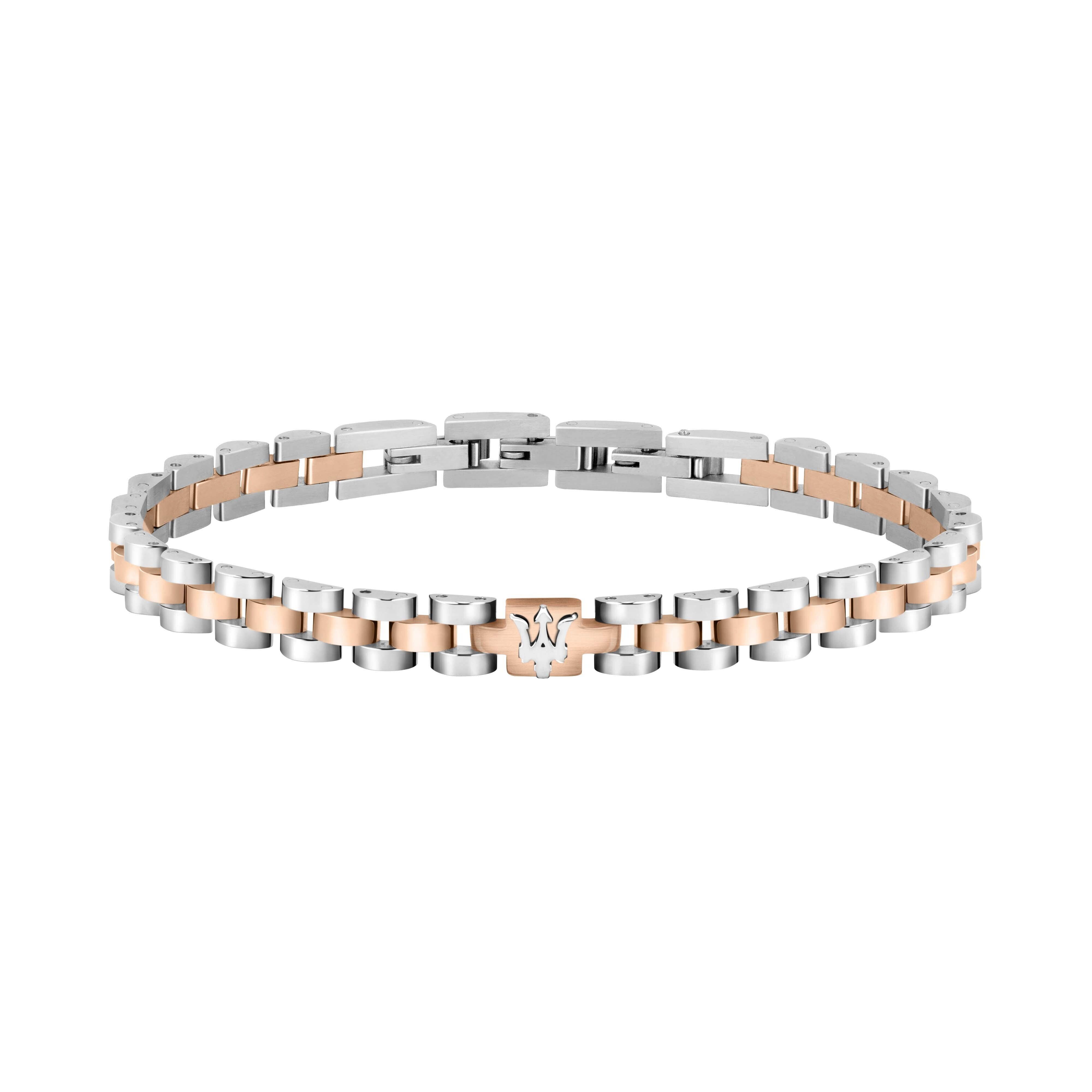 Features: Item: JM121ATK11 Collection: Jewels Size: 210mm Colour: Silver, Rose Gold Product Type: Bracelet Closure Type: Fold Over Clasp Material: Stainless Steel