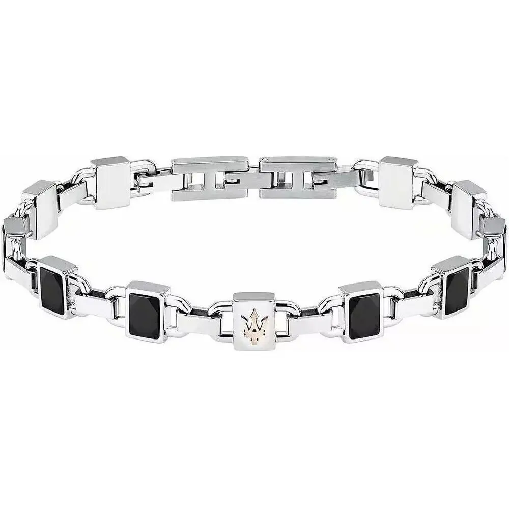 Features: Item: JM424ATZ41 Brand: Maserati Gender: Men’s Colour: Silver And Black Product Type: Bracelet Material: Steel Secondary Material: Ceramic Size: 19cm + Extension 3cm