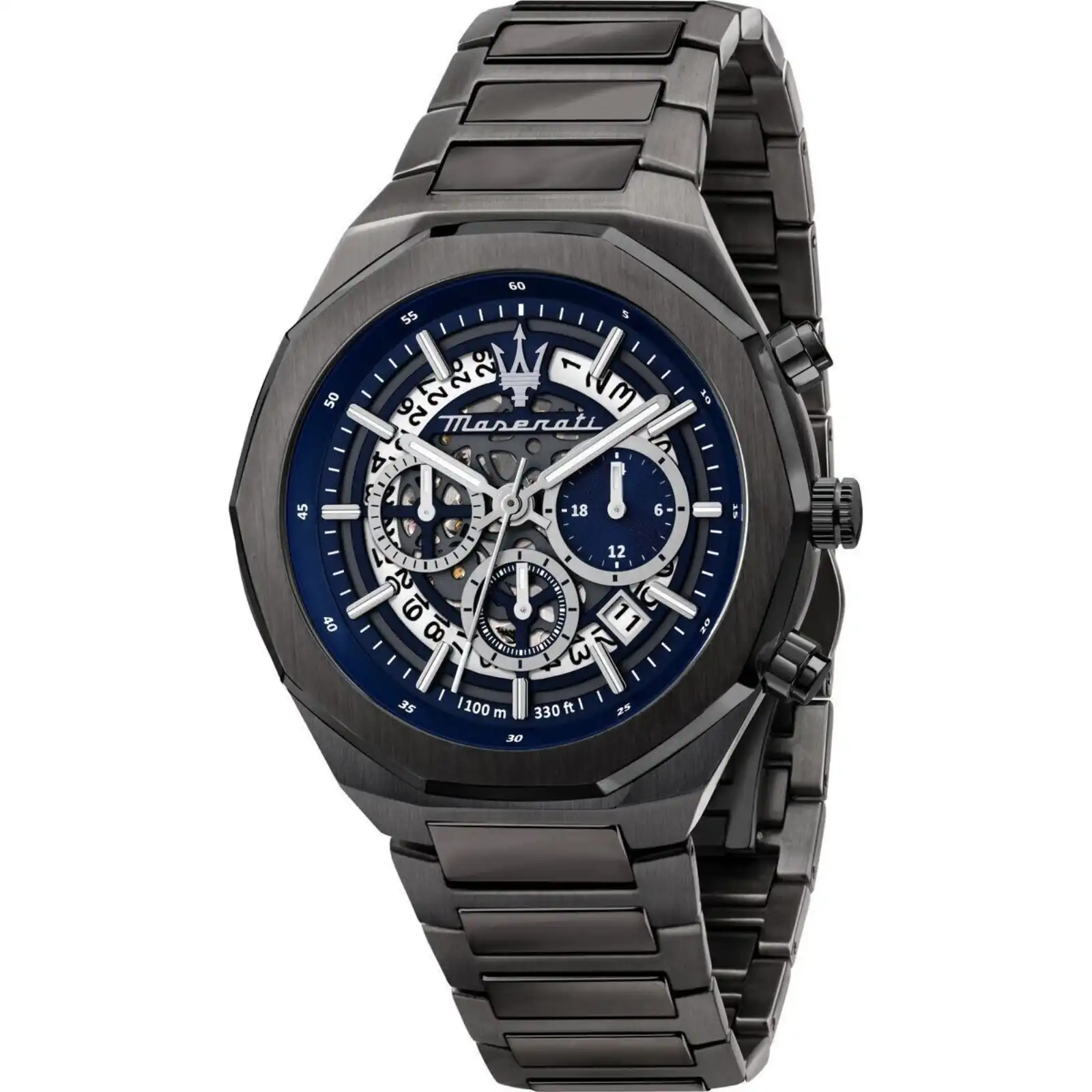 Maserati Stile Chronograph Stainless Steel Blue Skeleton Dial Quartz R8873642012 100M Men’s Watch