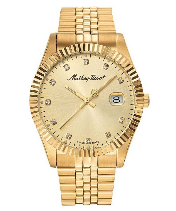 Mathey-Tissot Mathy II Stainless Steel Crystal Accents Gold Tone Dial Quartz H710PDI Men’s Watch