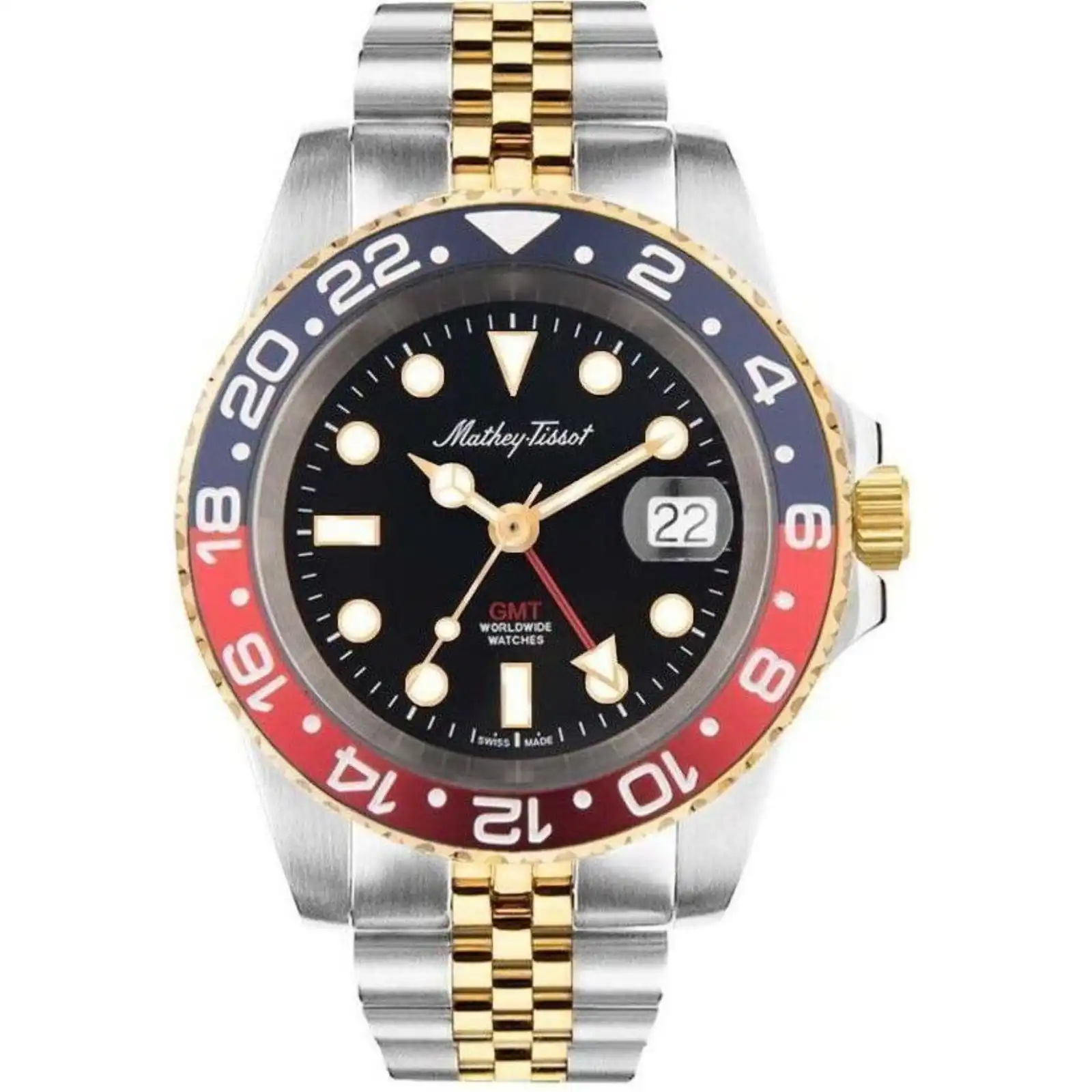 Mathey-Tissot Rolly Mathy Vintage GMT Two Tone Stainless Steel Black Dial Quartz H903BBR 100M Men’s Watch