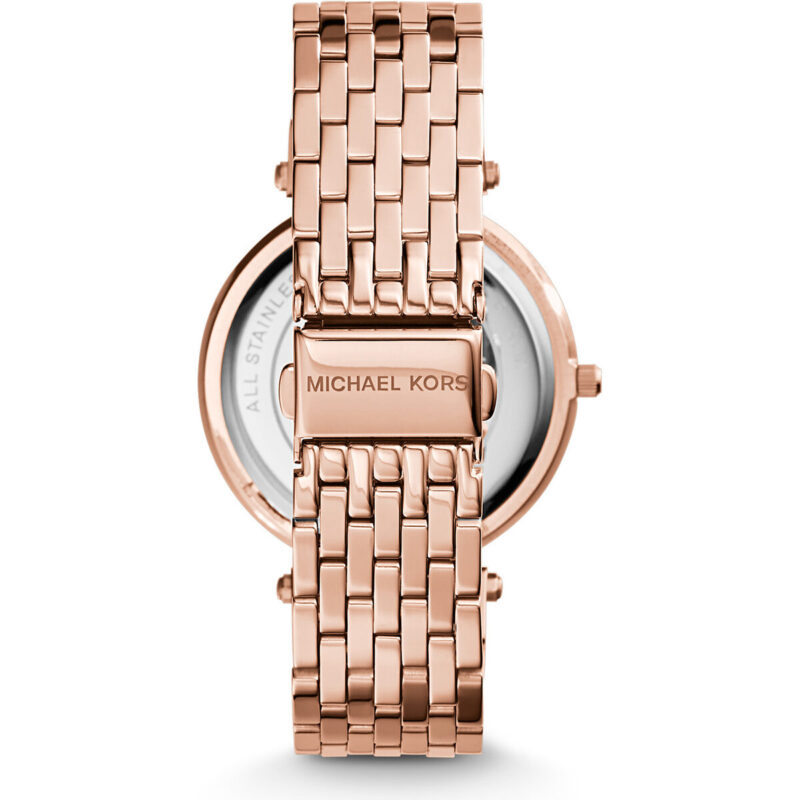 While the MK3192 is a definitive fashion statement, its construction is surprisingly robust. The use of 316L Stainless Steel ensures the case is hypoallergenic and resistant to the corrosion often caused by humid coastal environments in cities like Durban or Cape Town. The Rose Gold-Tone Ion Plating (IP) is vacuum-bonded to the steel, making it far more resistant to fading or tarnishing than traditional electroplating. Furthermore, the 5ATM (50m) Water Resistance rating means the watch is fully protected against splashes, rain, and brief immersion in water, ensuring it remains as durable as it is beautiful.