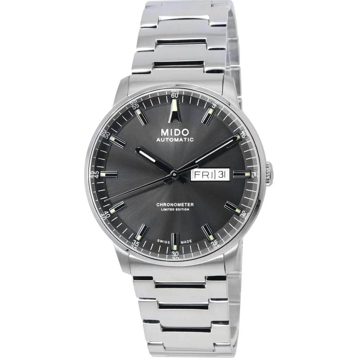 Stainless Steel Case Stainless Steel Bracelet Automatic Movement Caliber: 80 25 Jewels Sapphire Crystal Anthracite Dial Analog Display Chronometer COSC Power Reserve Upto 80 Hours Luminous Hands And Markers Day And Date Display Screw Down Crown Screwed Case Back Deployment Clasp 50m Water Resistance