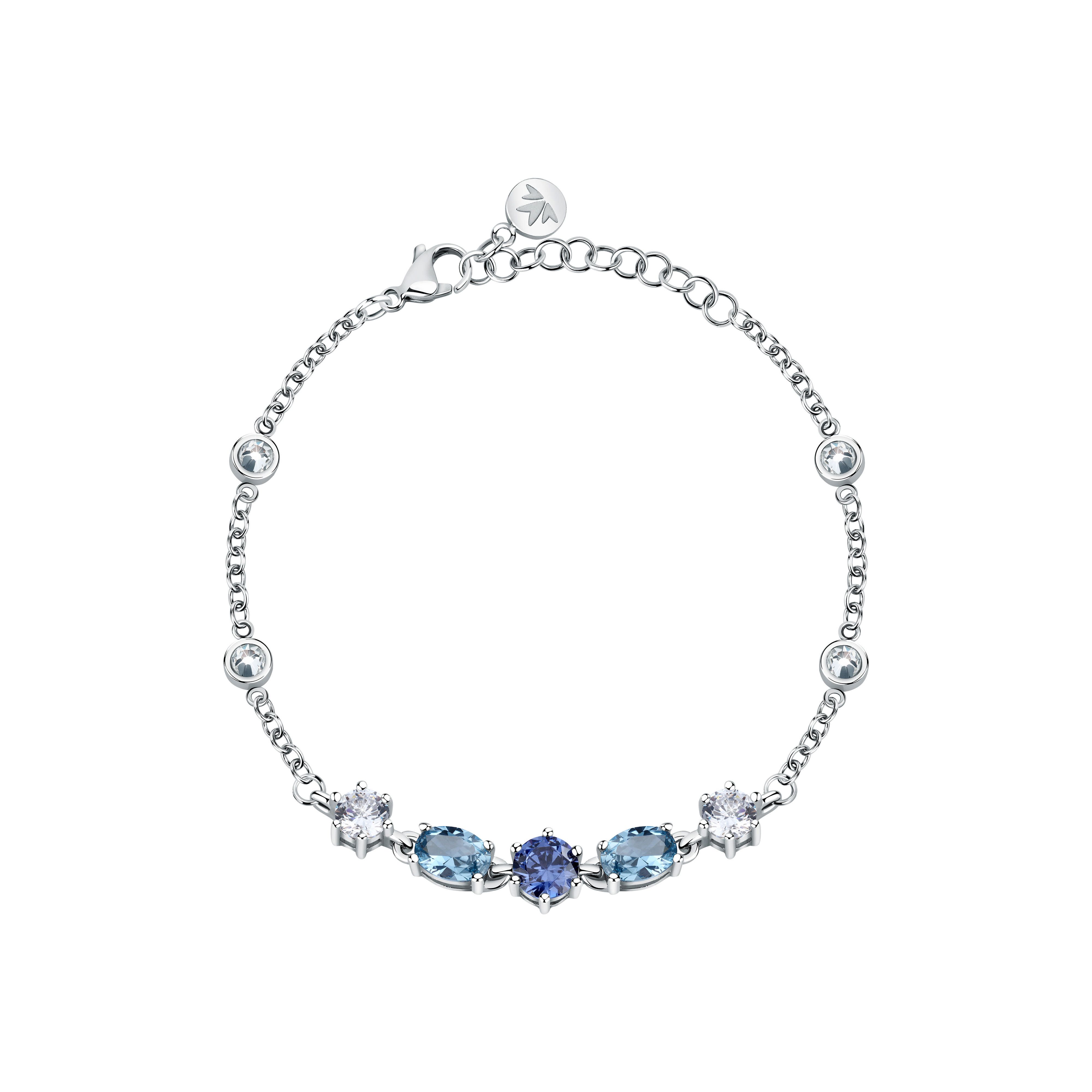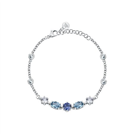 Features: Item: SAVY18 Collection: Colori Size: 16cm, 3cm Colour: Silver Product Type: Bracelet Closure Type: Lobster Clasp Stone: Light Blue Crystals Material: Stainless Steel, Rhodium Plating Weight: 10g