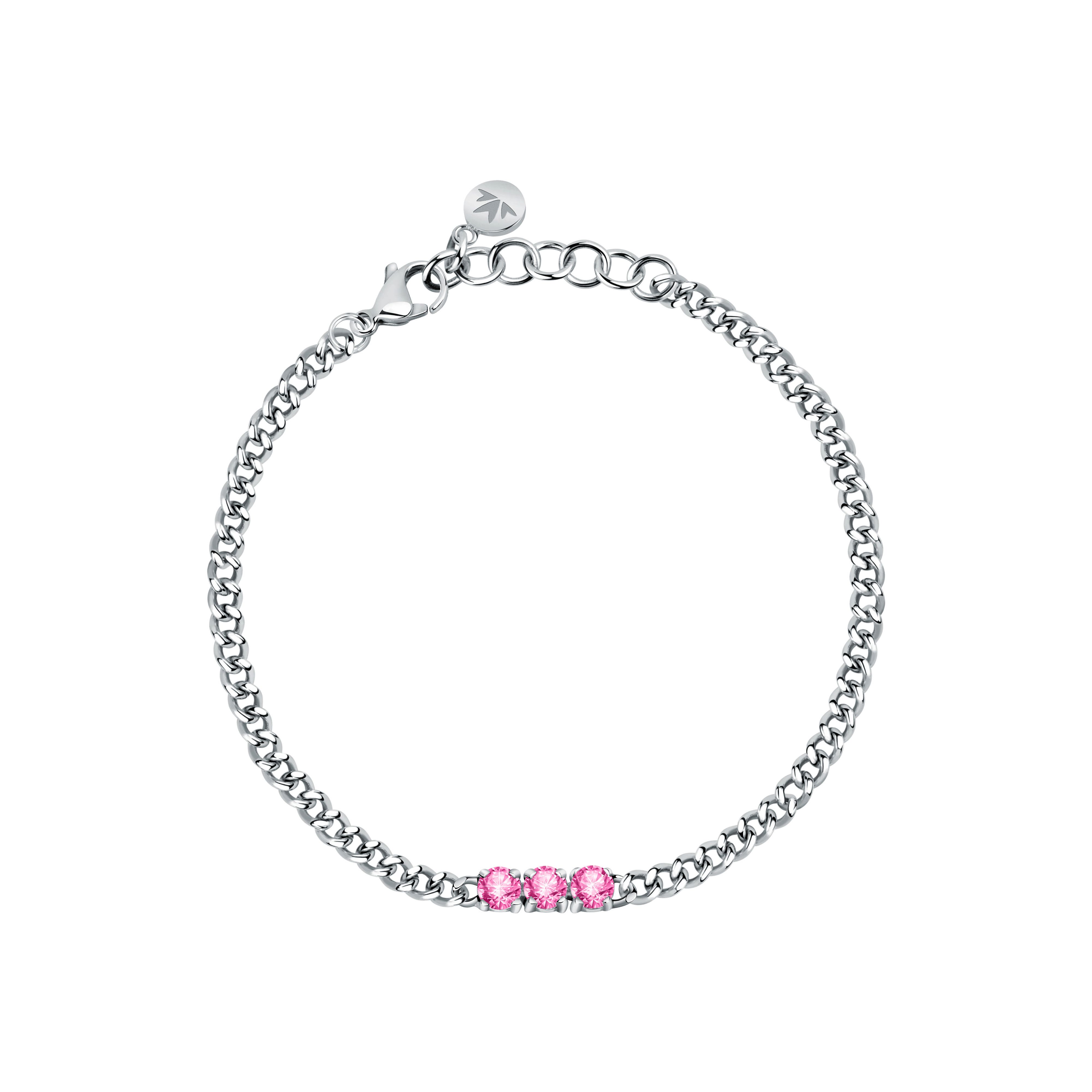 Features: Item: SAUZ13 Collection: Poetica Size: 16cm, 3cm Colour: Silver Product Type: Bracelet Closure Type: Lobster Clasp Stone: Fucsia Crystals Material: Stainless Steel Weight: 4g