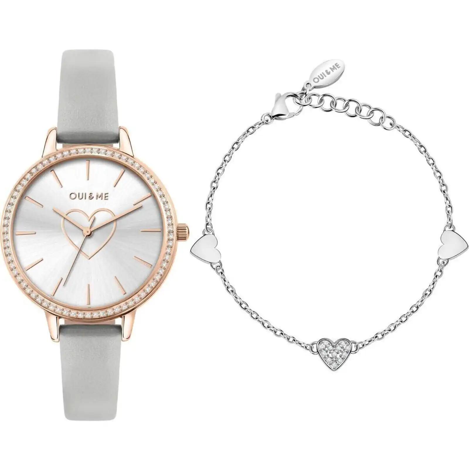 Oui & Me Amourette Crystal Accents Leather Strap Silver Dial Quartz ME010289 Women’s Watch With Extra Bracelet