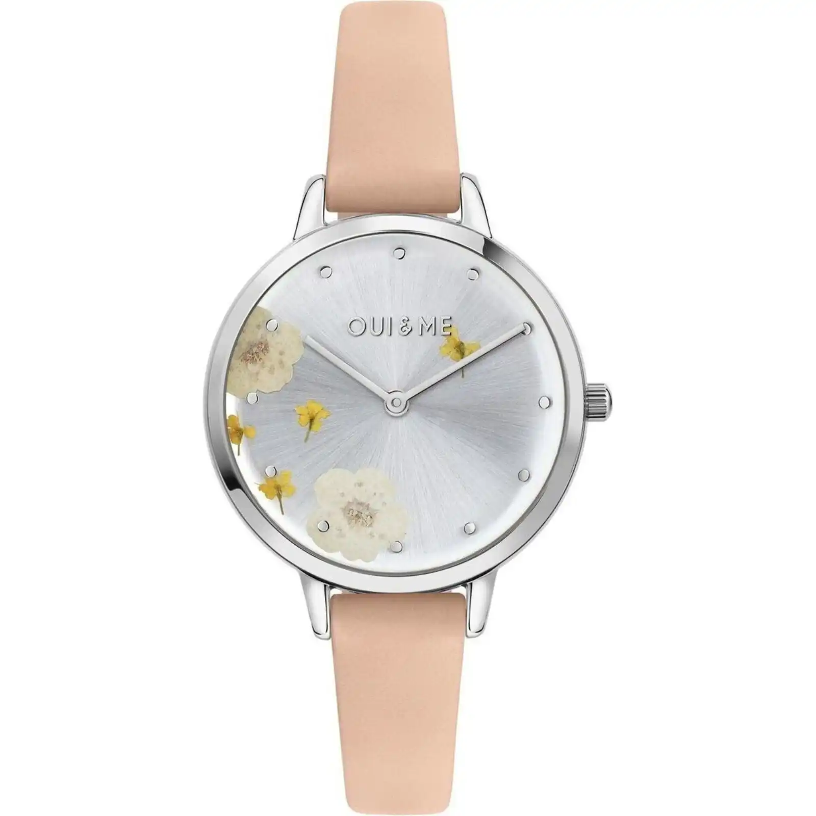 Oui & Me Fleurette Pink Leather Strap Silver Dial Quartz ME010372 Women’s Watch