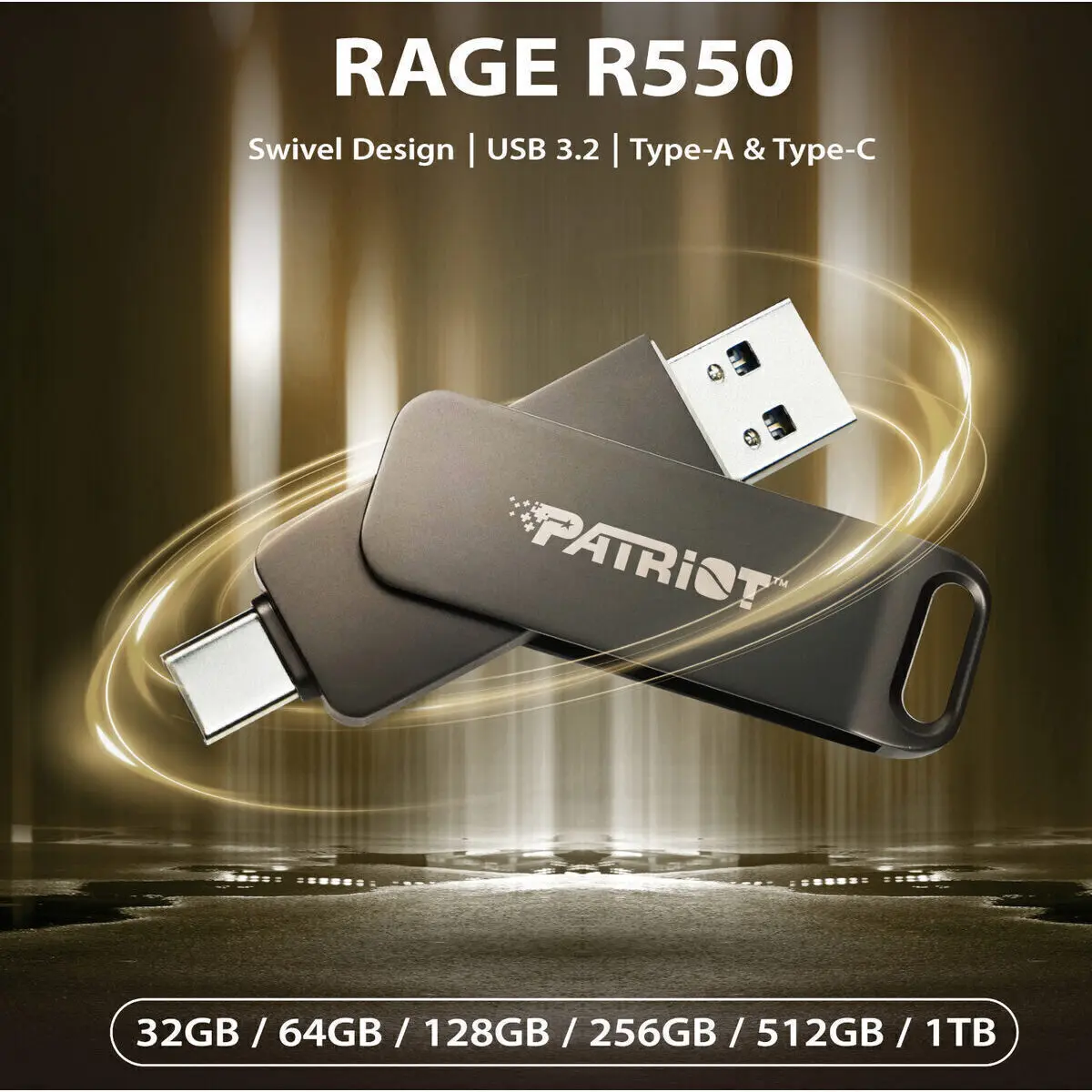 - Patriot Rage R550 256GB USB3.2 Swing Type A to Type-C Flash Drive – Black x1