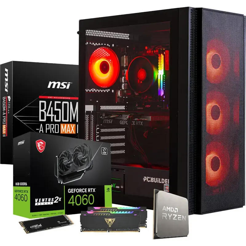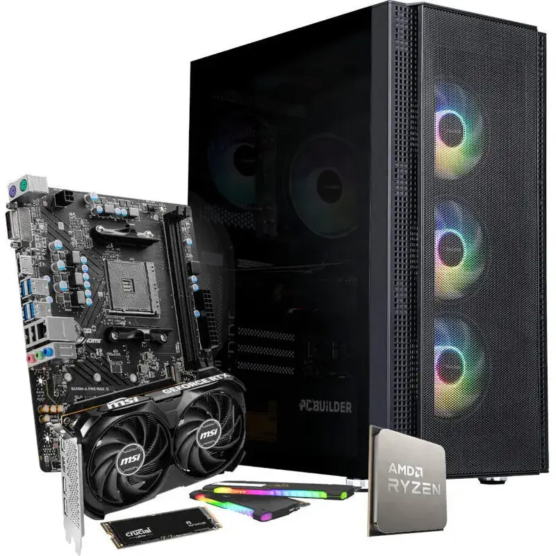 Outlast the opposition with the PCBuilder AMD Ryzen 5 5600X BARRICADE Windows 11 Gaming PC. This pre-built gaming PC is powered by a 5th generation AMD Ryzen 5 5600X CPU. It also comes with an MSI B450 chipset motherboard, 16GB of high-speed DDR4 memory, an MSI GeForce RTX 4060 Graphics Card, an NVMe SSD and a 600W Non-Modular power supply.