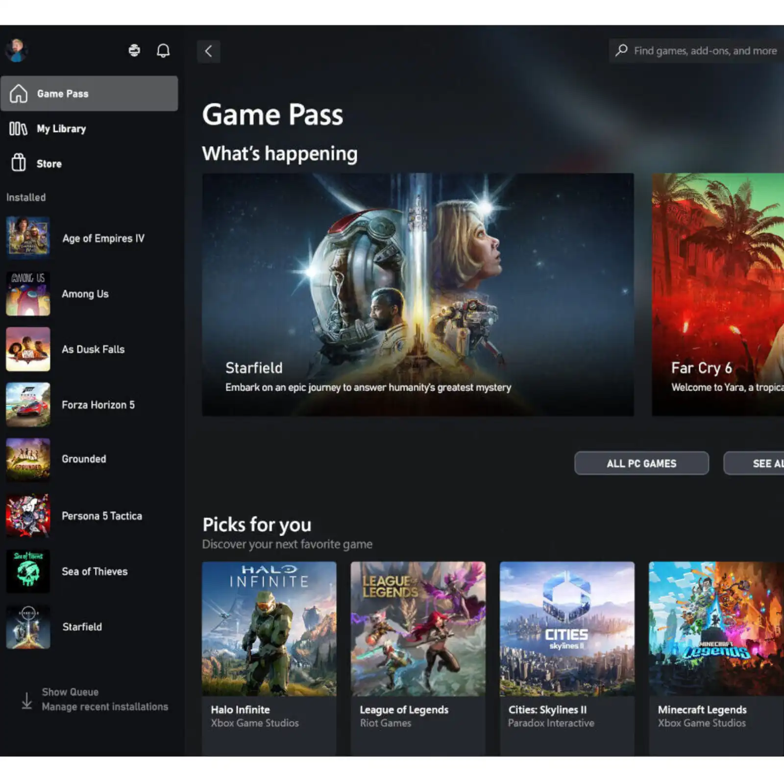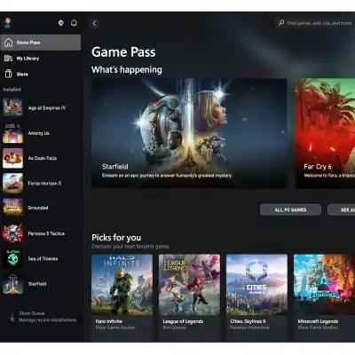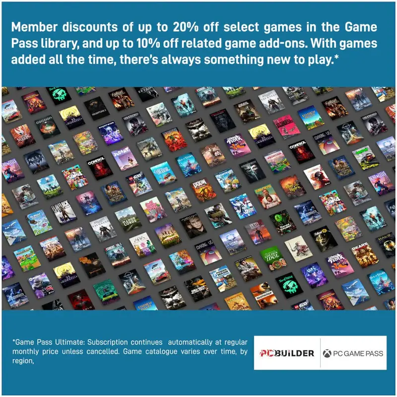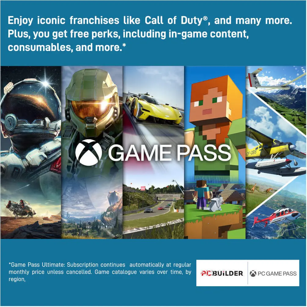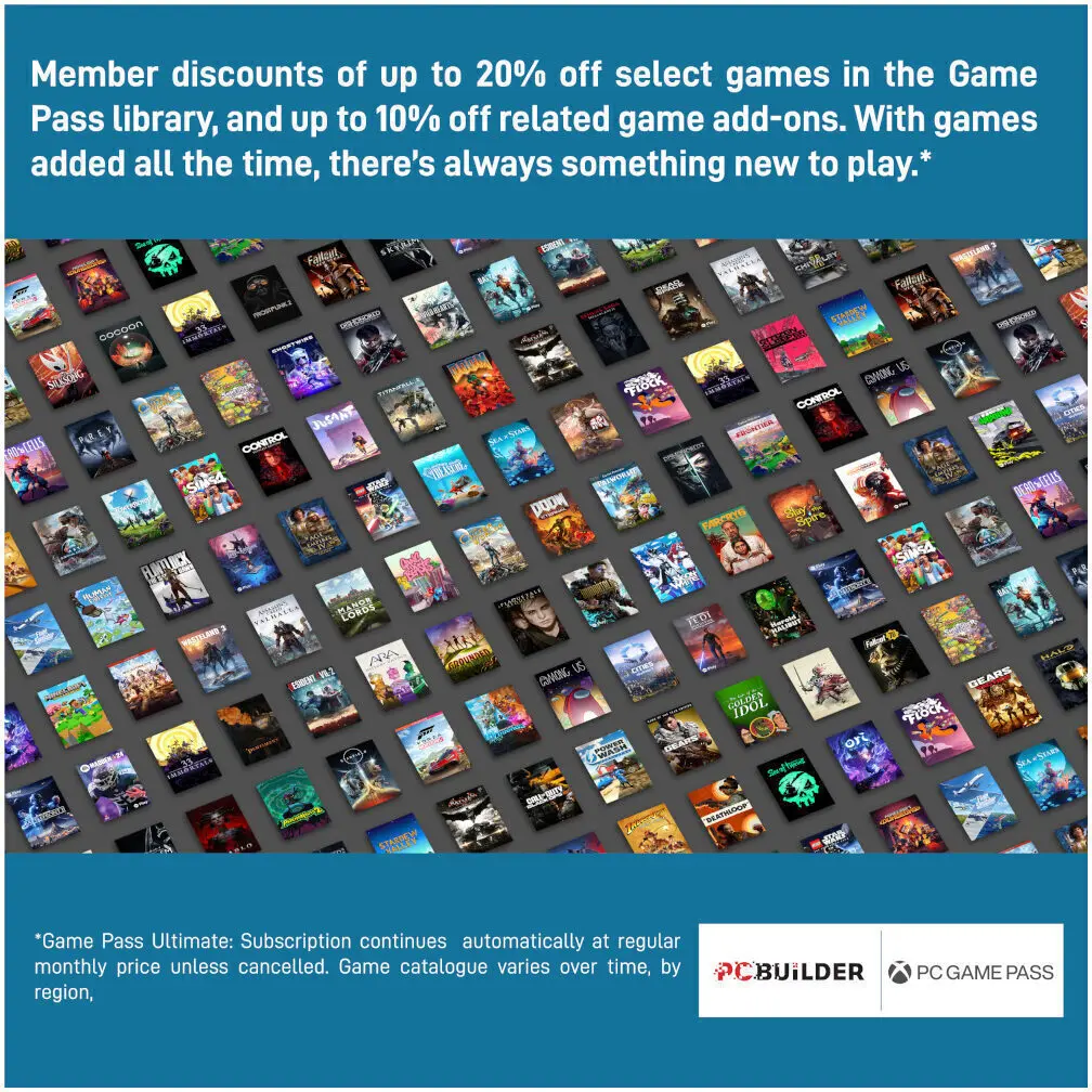 - Play over 100 high-quality PC games, plus new and upcoming blockbusters on day one like Halo Infinite, Forza Horizon 6 and Age of Empires IV with your new build and one month of Xbox Game Pass including EA Play. With new games being added all the time, there’s always something new to play.
