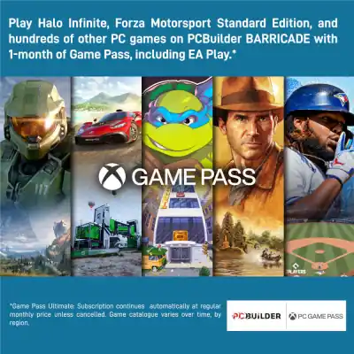 Play over 100 high-quality PC games, plus new and upcoming blockbusters on day one like Halo Infinite, Forza Horizon 5, and Age of Empires IV with your new BARRICADE Gaming PC and one month of Xbox Game Pass-including EA Play. With new games added all the time, there’s always something new to play.