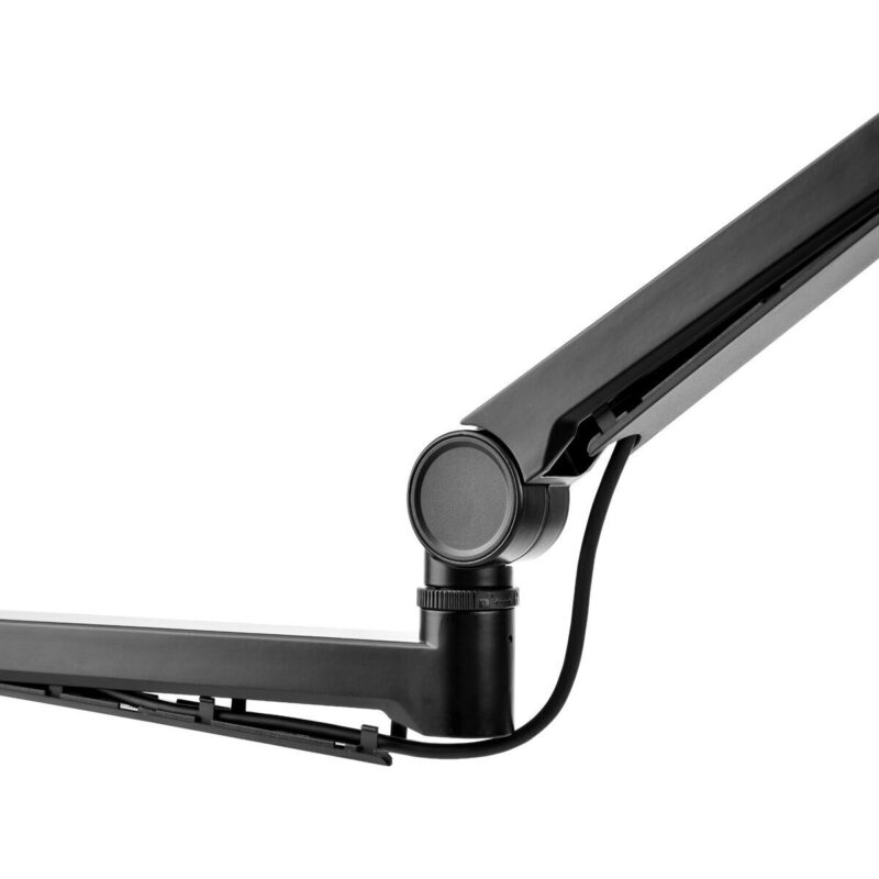 What sets this podcast mic arm apart is its smart, user-focused design. A quick-release mechanism allows for fast gear swaps, making it easy to switch between mic setups or accessories on the fly. The built-in cable channel keeps your workspace tidy by routing your cables cleanly through the arm – ideal for creators who care about both performance and presentation.