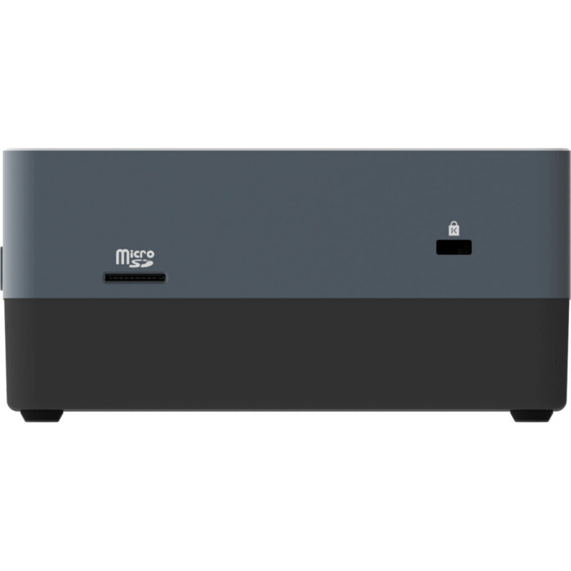 Connectivity is seamless with a variety of high-speed options. Equipped with Intel® Wi-Fi 6 (802.11ax), Bluetooth® 5.2, and Gigabit Ethernet, this compact PC provides fast, reliable networking whether you’re working in an office, a co-working space, or a remote setup. The inclusion of ultra-fast USB 3.2 and Thunderbolt™ 4 ports enables high-speed data transfers up to 40Gbps, making it perfect for professionals who need quick file access, fast backups, and seamless peripheral connections.
