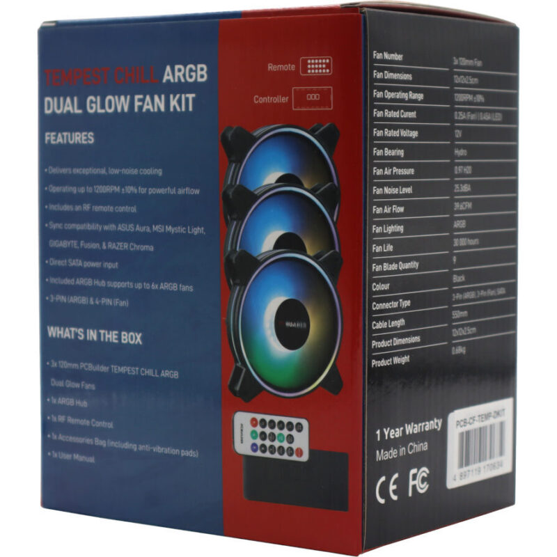 - PCBuilder TEMPEST CHILL ARGB 120mm Dual Glow Fan x3