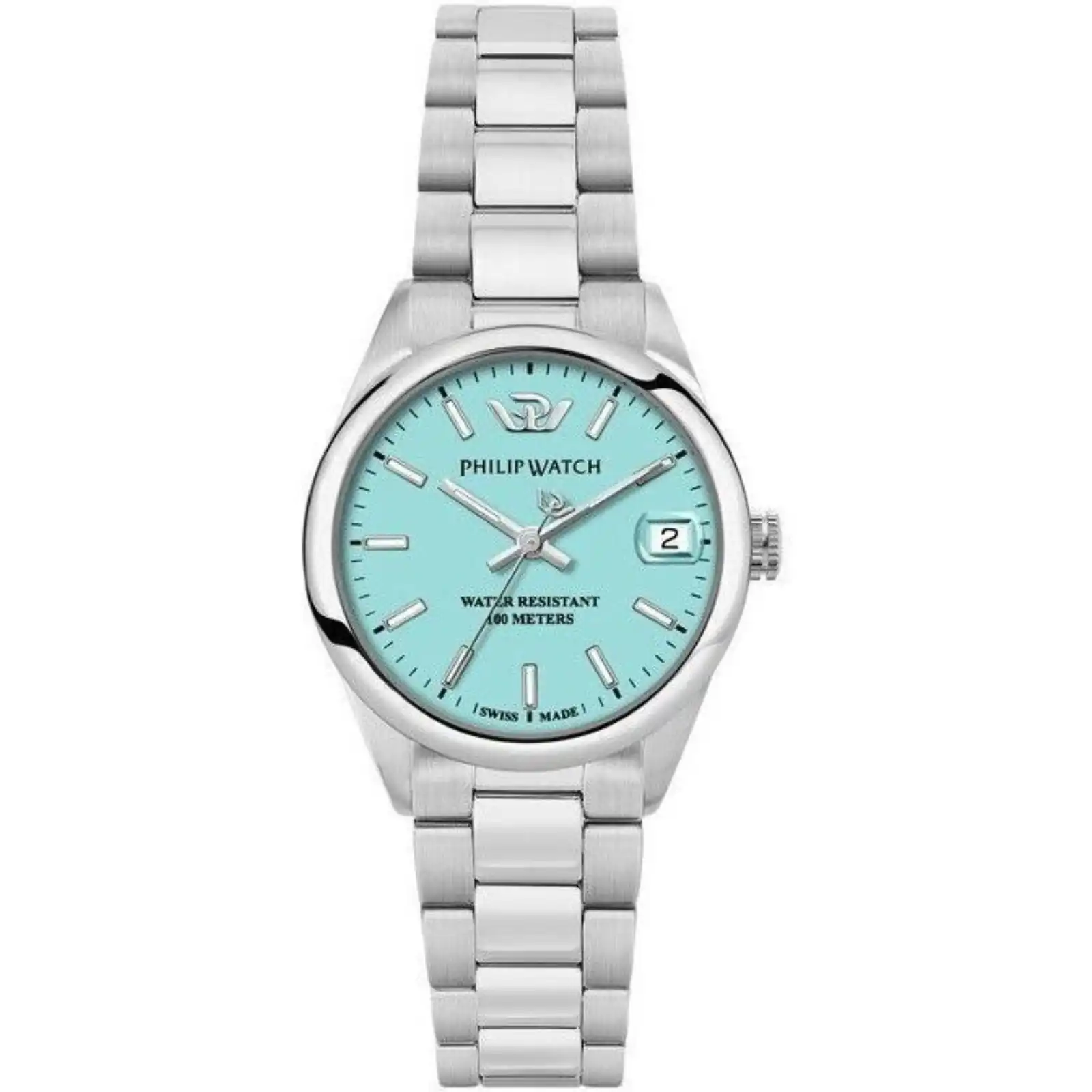 Philip Watch Swiss Made Caribe Urban Stainless Steel Turquoise Dial Quartz R8253597645 100M Women’s Watch
