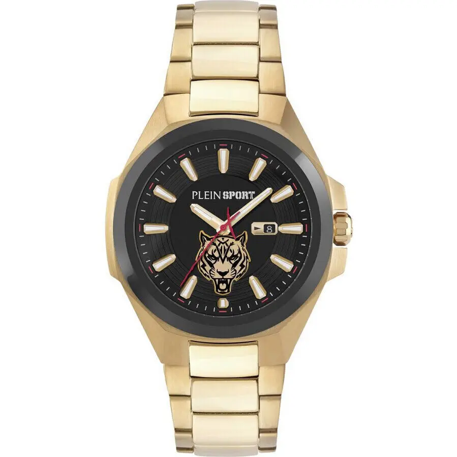 Plein Sport Tigermaster 3H PS7BA0824 Men’s Watch, Quartz Watch, Stainless Steel Case, Stainless Steel Strap, gold