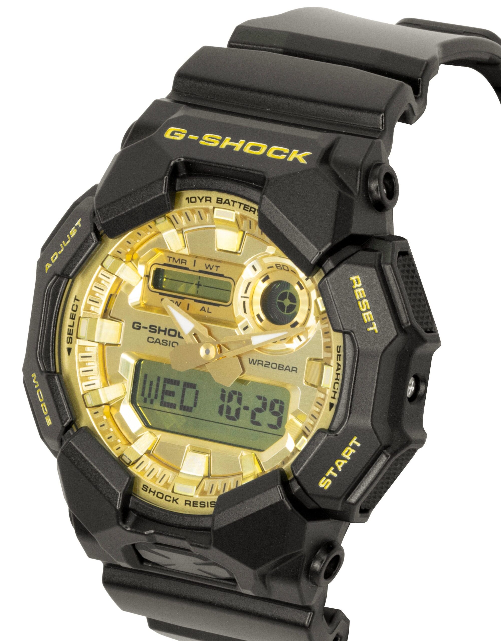 -23%With its bold gold dial and sleek design, this G-Shock is the perfect combination of style and durability. The analog-digital display offers versatility, making it easy to read and adjust for any occasion. Featuring a bio-based resin strap, it’s both eco-friendly and built to withstand the toughest conditions. With 200m water resistance, this watch is ideal for those who need a reliable timepiece for aquatic activities or outdoor adventures. Powered by quartz movement, the GA-010GGB-1A9 ensures precise timekeeping, making it a top choice for those who appreciate rugged yet stylish quartz men’s watches.