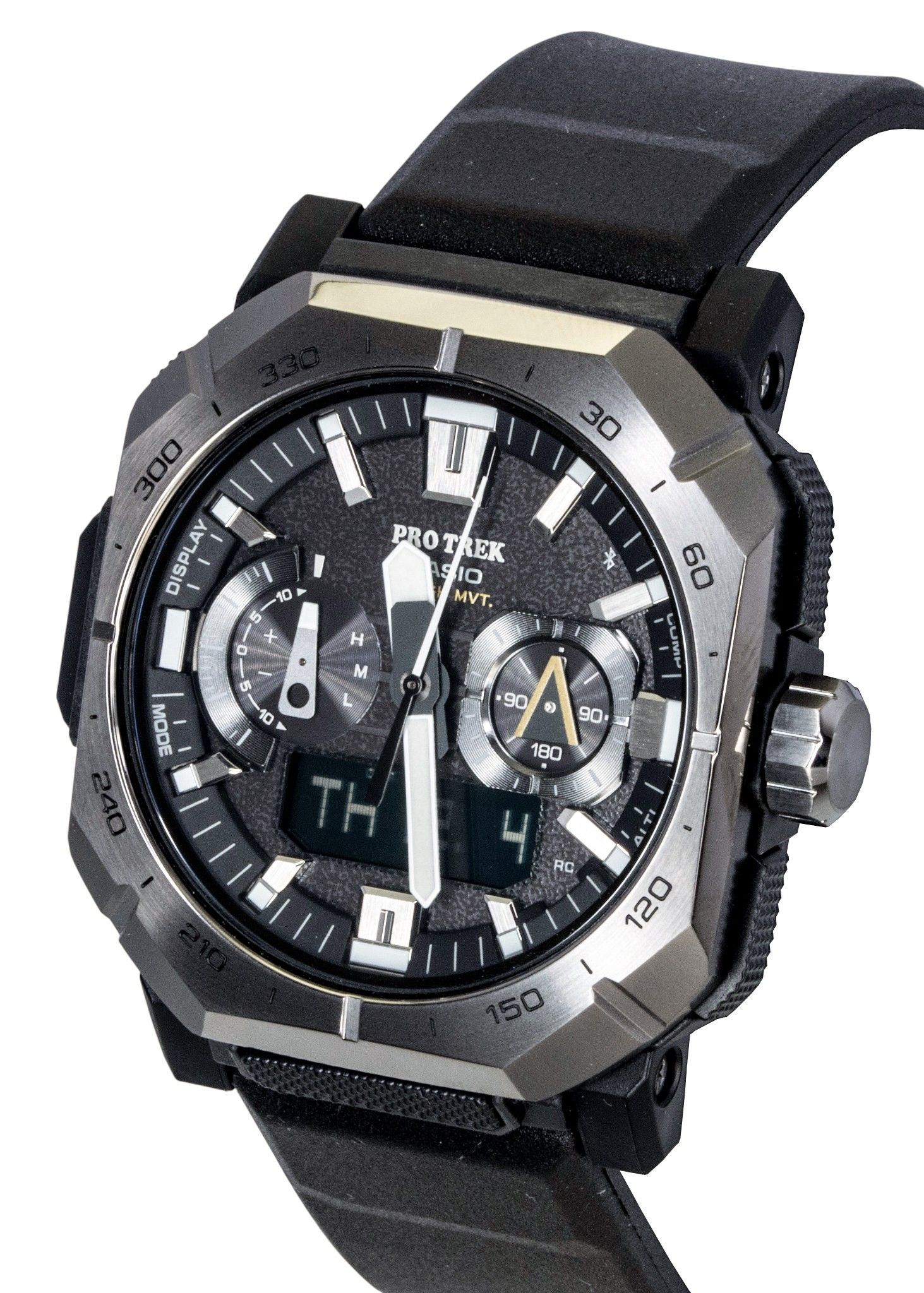 Casio Pro Trek Analog Digital Smartphone Link Black Rubber Strap Black Dial Solar PRW-B1000-1 100M Men’s Watch