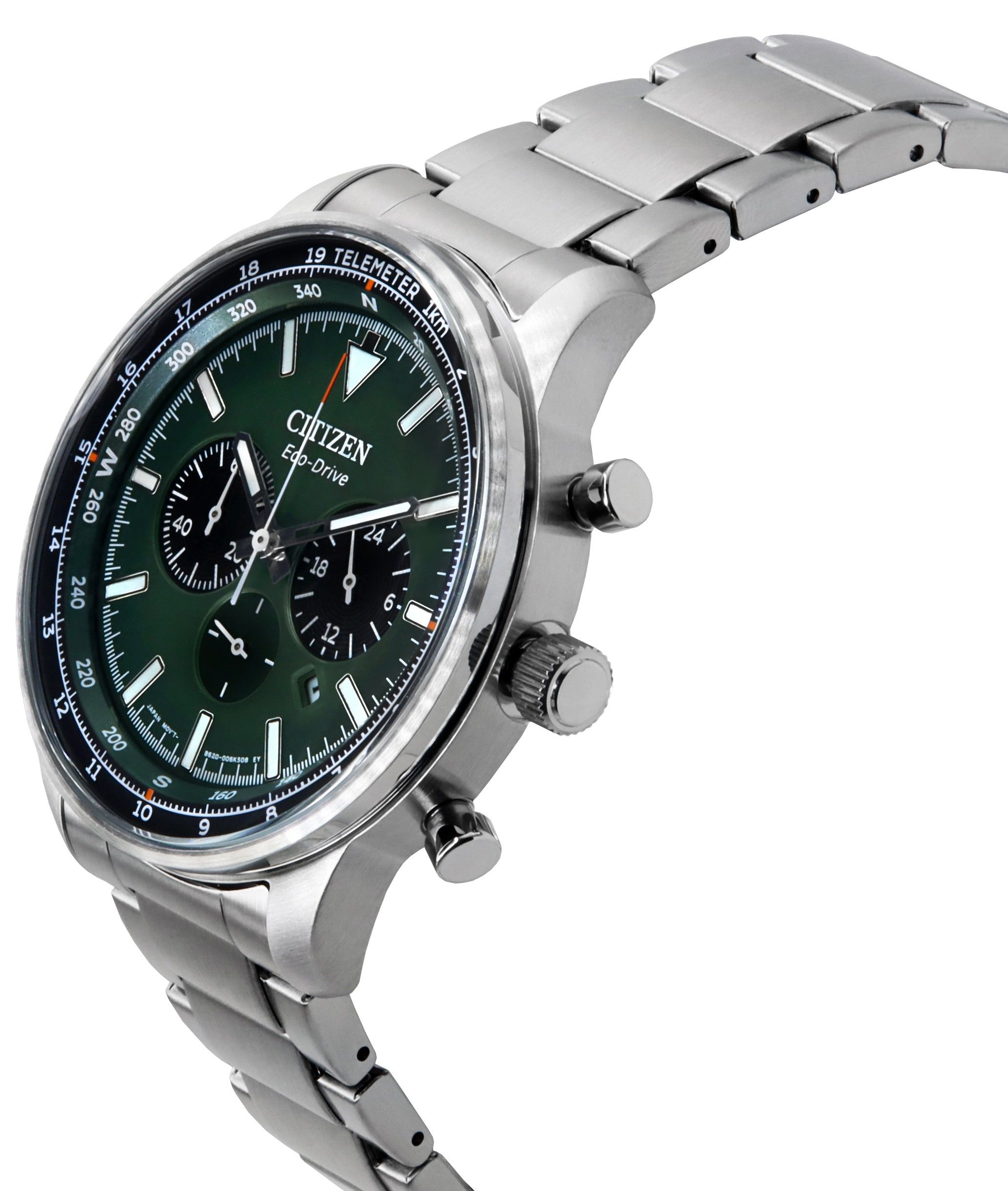 Citizen Eco-Drive Chronograph Stainless Steel Green Dial CA4500-91X 100M Men’s Watch