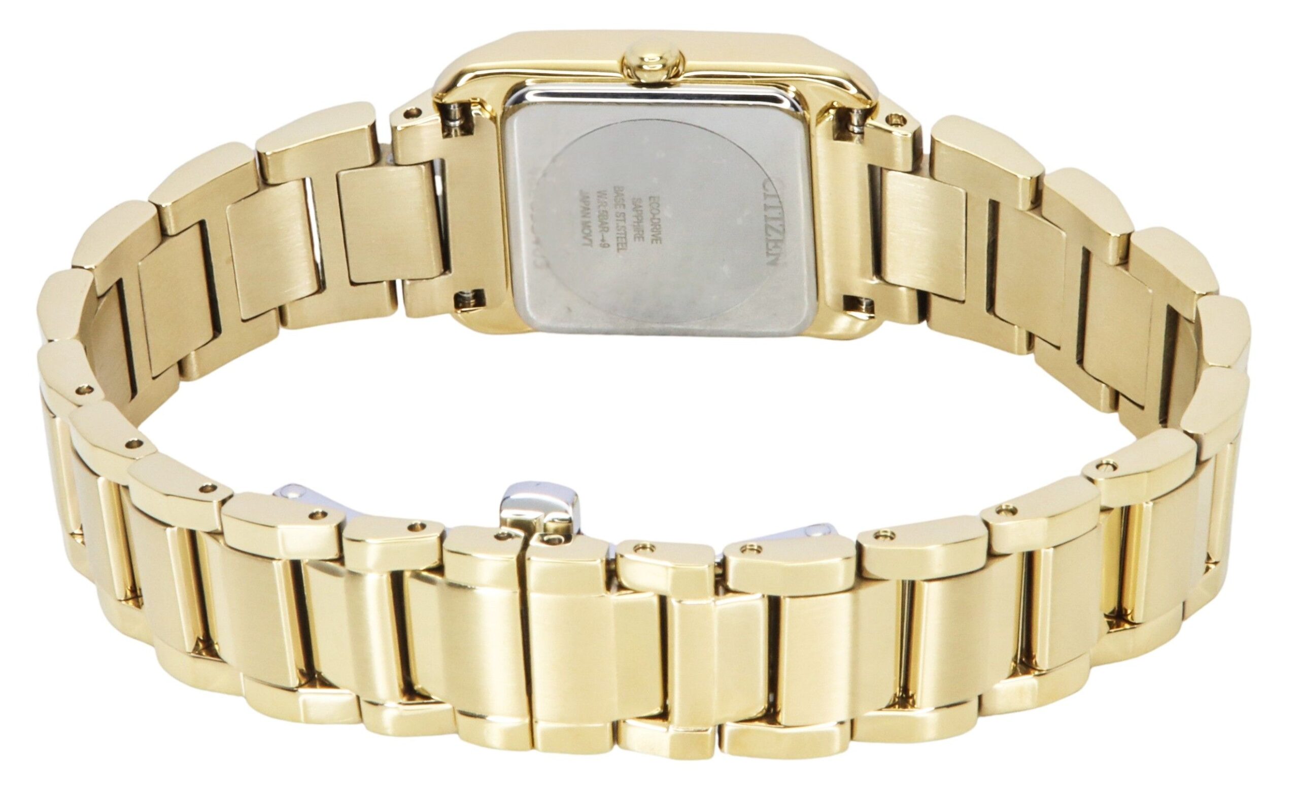 Gold Tone Stainless Steel Case Gold Tone Stainless Steel Bracelet Eco-Drive Movement Caliber: B035 Sapphire Crystal Mother Of Pearl Dial Analog Display Power Reserve Up to 7 Months Solid Case Back Deployment Clasp 50M Water Resistance