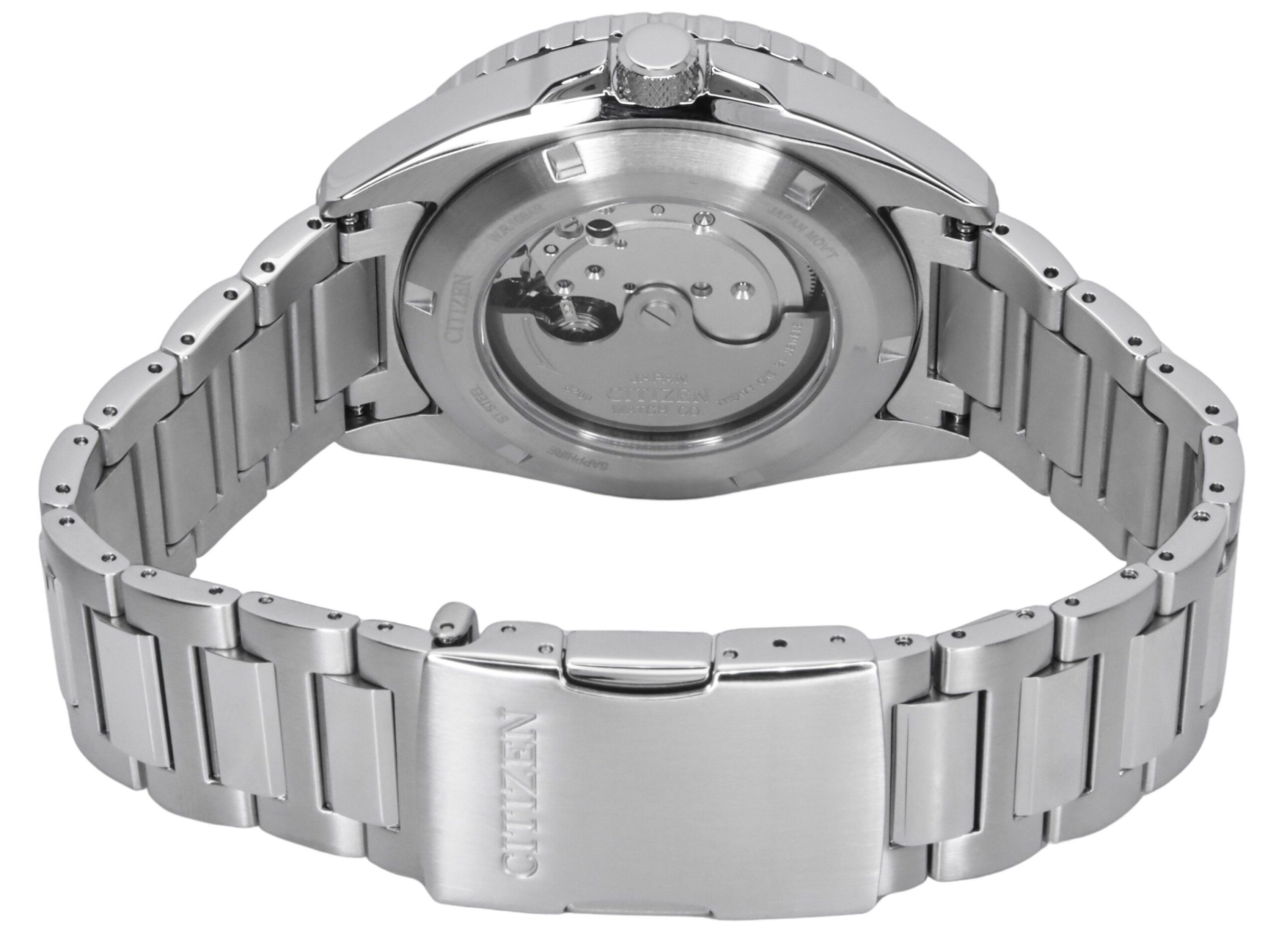 Stainless Steel Case Stainless Steel Bracelet Automatic Movement Caliber: 8200 21 Jewels Sapphire Crystal Light Blue Dial Analog Display Hack Feature Luminous Hands And Markers Day And Date Display Unidirectional Rotating Bezel See Through Case Back Deployment Clasp 100M Water Resistance