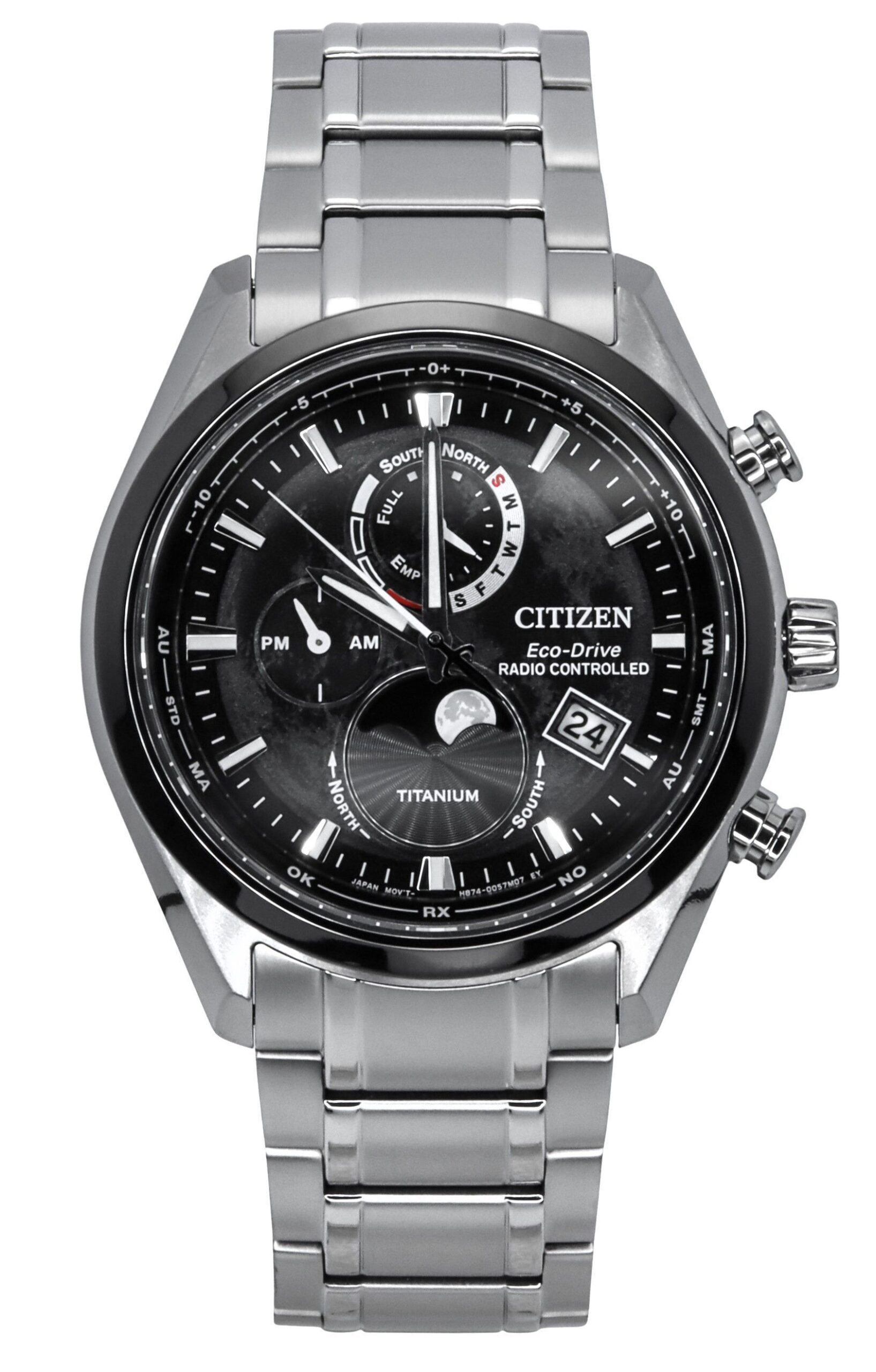 Citizen Tsuki-Yomi Radio Controlled Moon Phase Super Titanium Black Dial Eco-Drive BY1018-80E 100M Men’s Watch