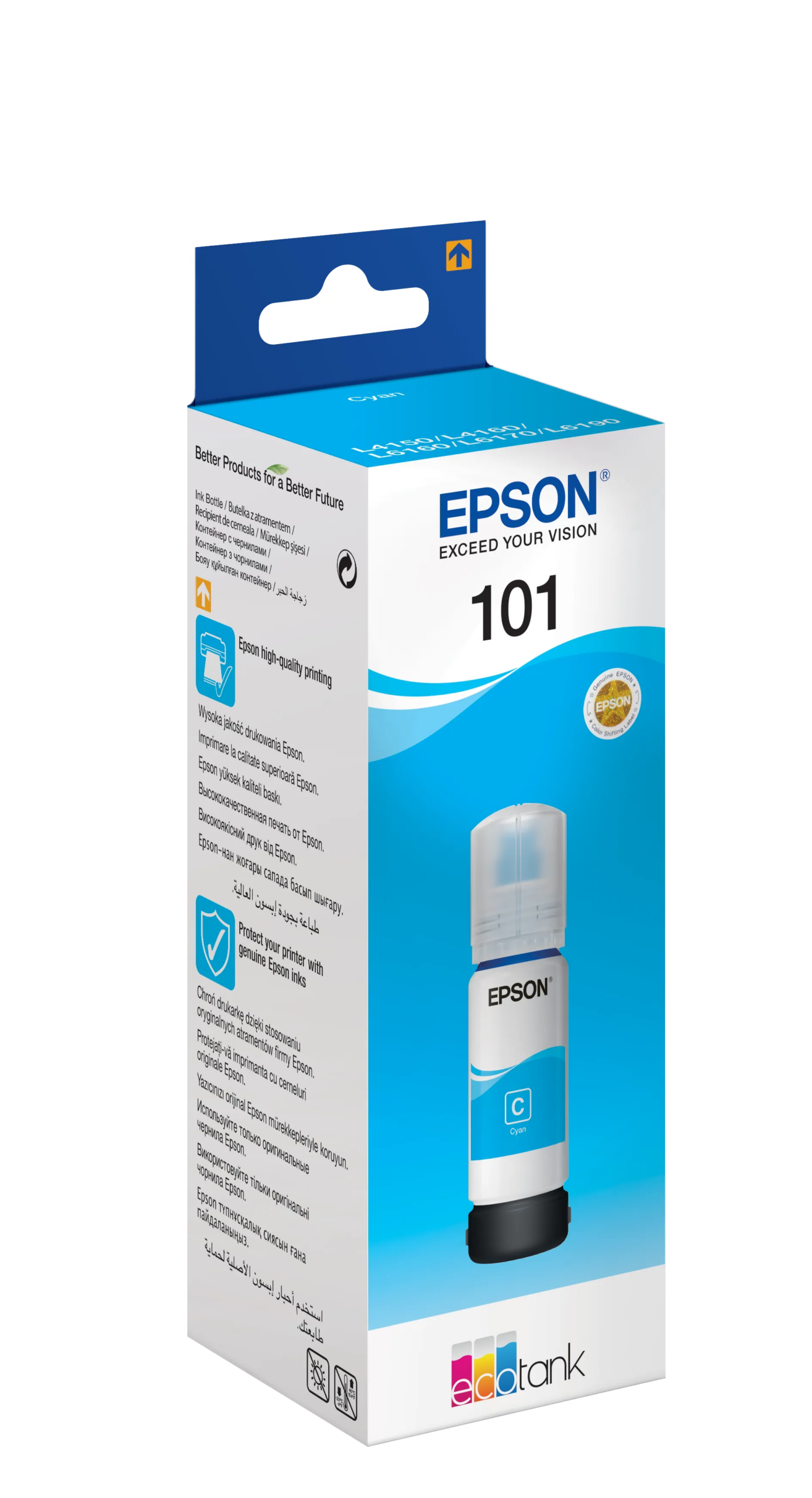 Epson 101 Ecotank Cyan ink bottle (70ml). 6000 pages @ 5% coverage.