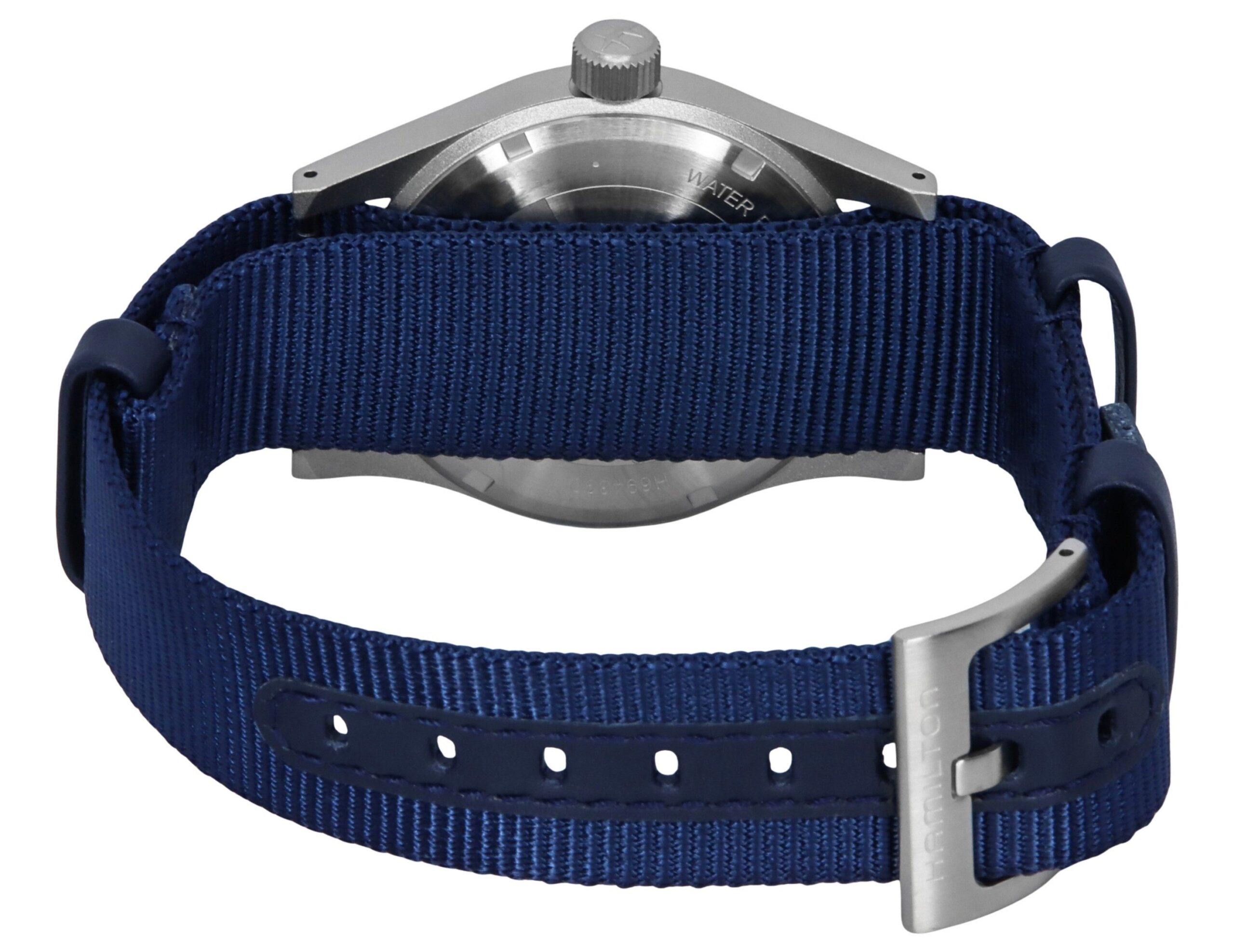 Stainless Steel Case Textile Strap Automatic Movement Caliber: H-50 17 Jewels Sapphire Crystal Blue Dial Analog Display Manual Winding Power Reserve Up to 80 Hours Luminous Hands And Markers Screwed Case Back Buckle Clasp 50M Water Resistance
