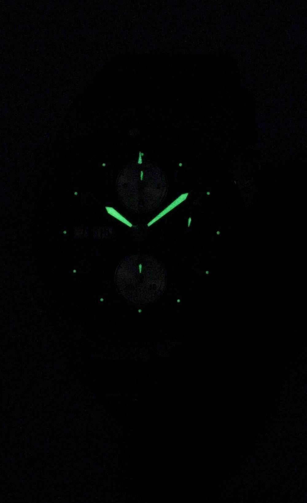 Stainless Steel Case Brown Leather Strap Automatic Movement Caliber: 7750 Scratch Resistant Sapphire Crystal Black Dial Chronograph Function Luminous Hands And Arabic Numeral Hour Markers Day And Date Displays At 9 O’clock Position Rotating Bezel Screw Down Crown Stainless Steel Skeletal Case Back 100M Water Resistant