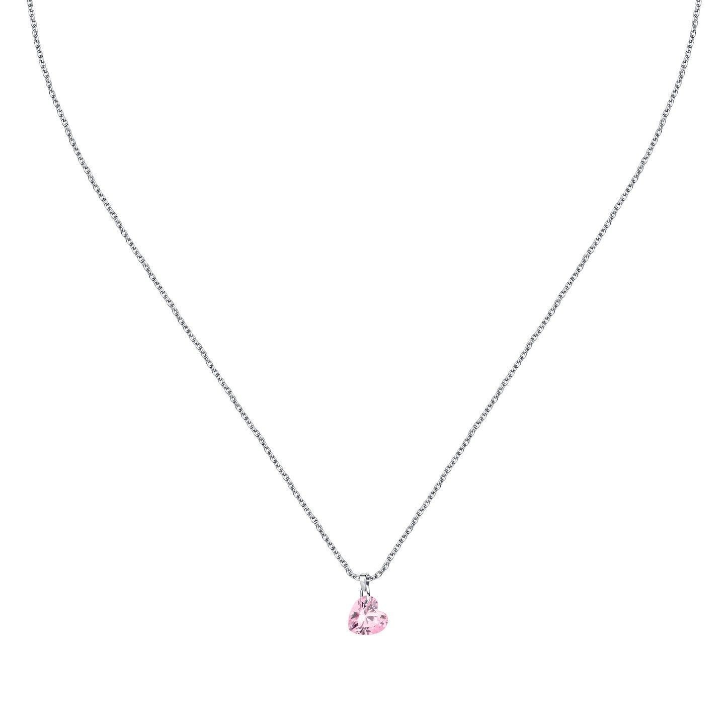 La Petite Story Silver Necklace With Pink Heart Zircon LPS10AWV33 For Women