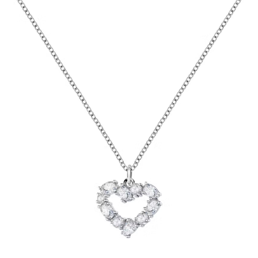 Features: Item: SAVY11 Collection: Colori Size: 40cm, 5cm Colour: Silver Product Type: Necklace Closure Type: Lobster Clasp Stone: Zircons White Symbol: Heart Material: Stainless Steel, Rhodium Plating Weight: 9g