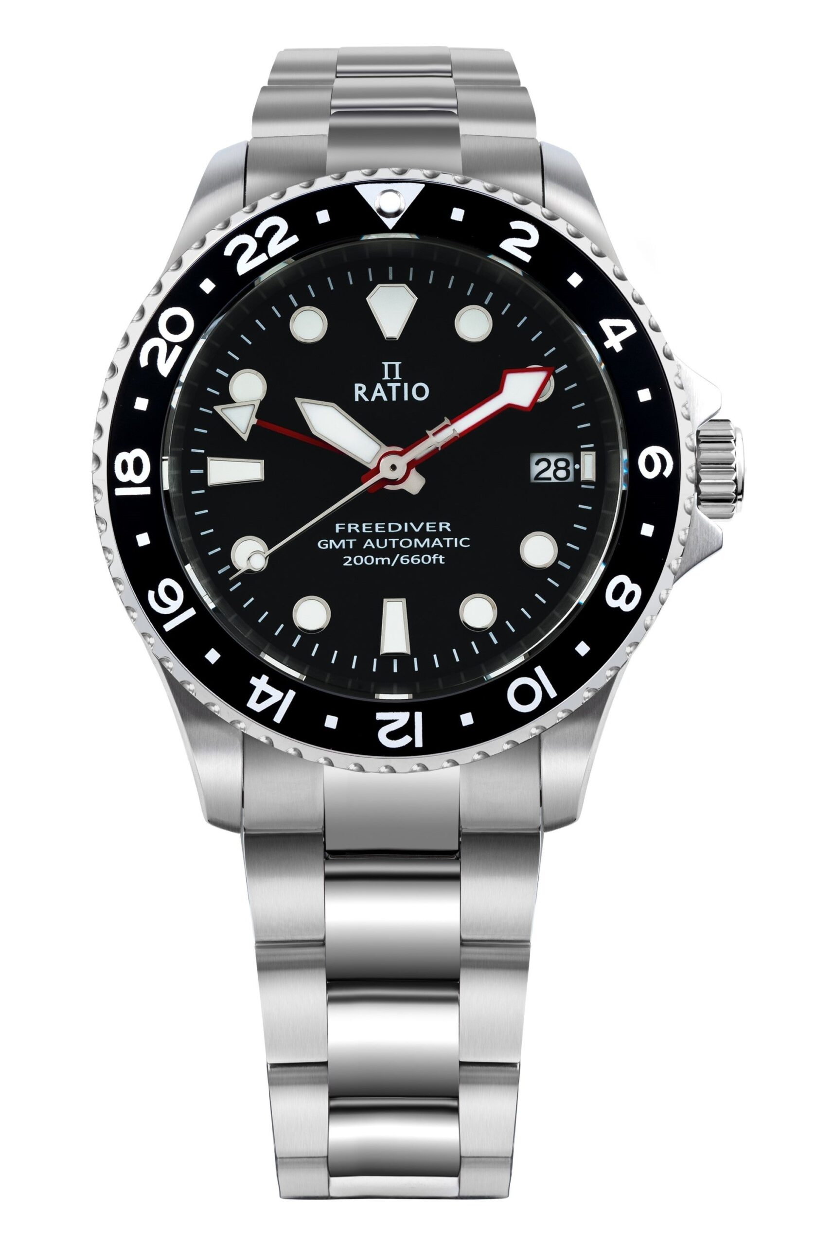 Ratio FreeDiver GMT Series Sapphire Stainless Steel Black Dial Automatic RTF051 200M Men’s Watch