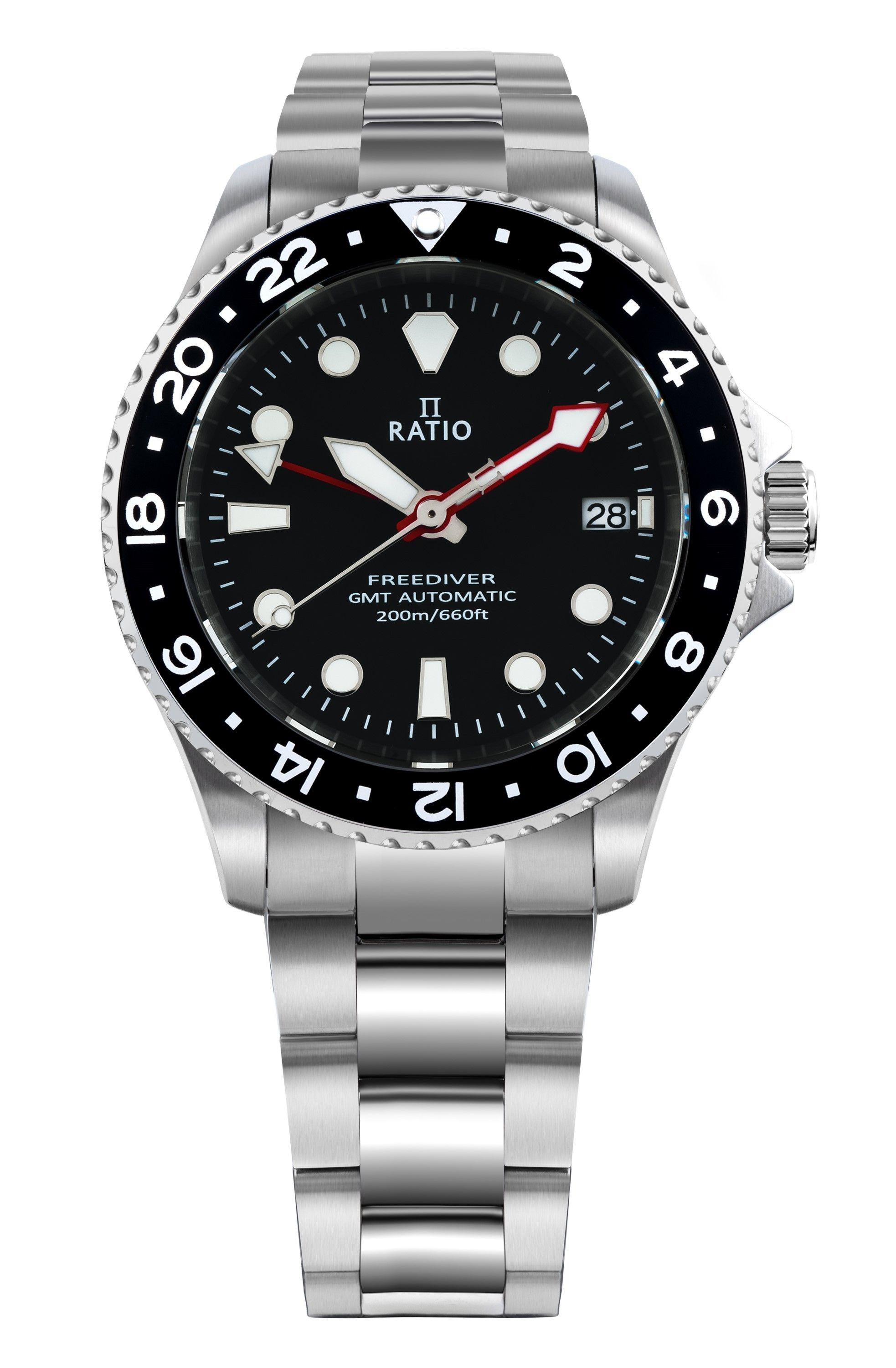 Ratio FreeDiver GMT Series Sapphire Stainless Steel Black Dial Automatic RTF051 200M Men's Watch