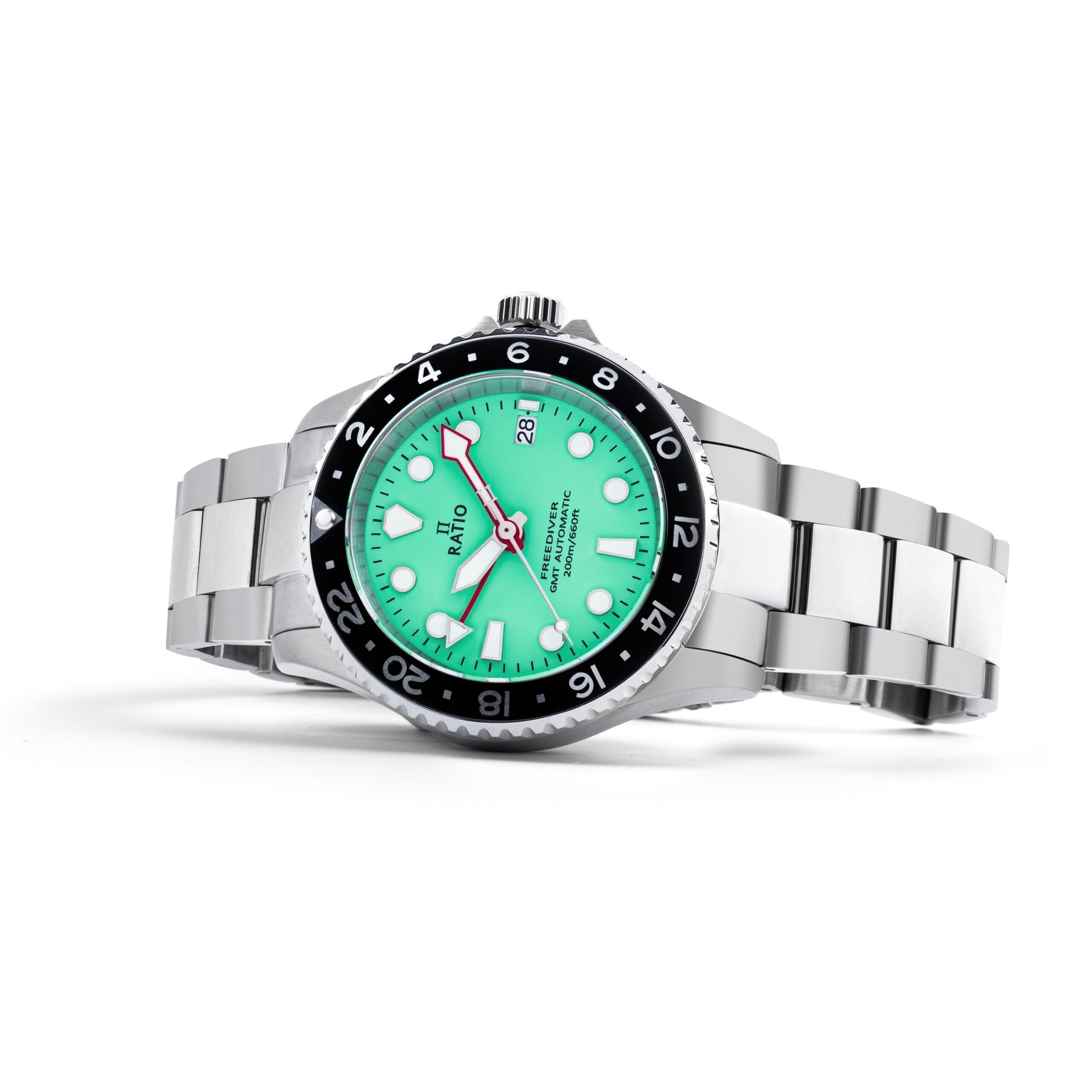 Ratio FreeDiver GMT Series Sapphire Stainless Steel Green Dial Automatic RTF059 200M Men's Watch