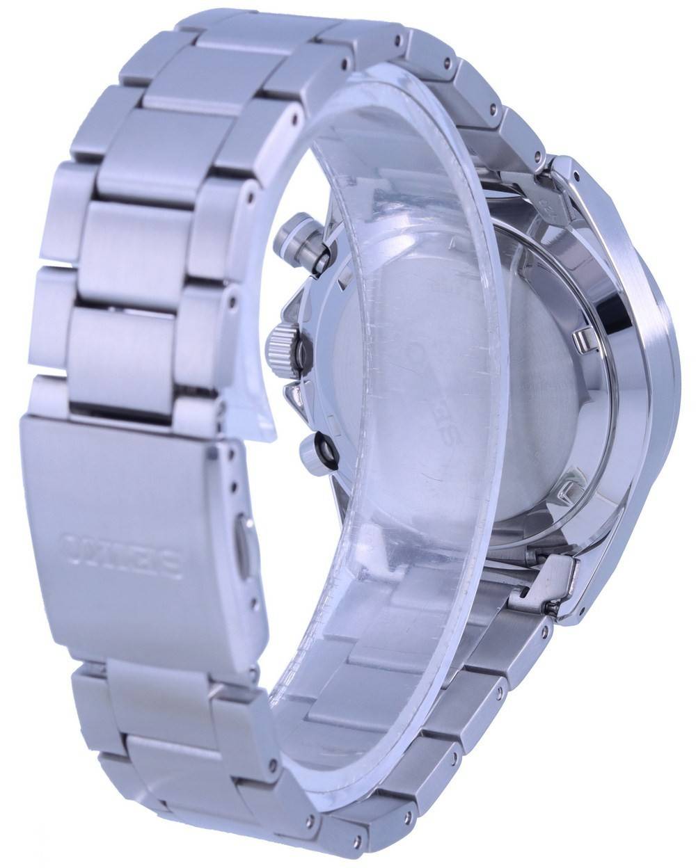Stainless Steel Case Stainless Steel Bracelet Quartz Movement Caliber: 8T63 Hardlex Crystal Black Dial Analog Display Tachymeter Scale Chronograph Function Luminous Hands And Markers Date Display 12/24 Hours Display Screwed Case Back Deployment Clasp 100m Water Resistance