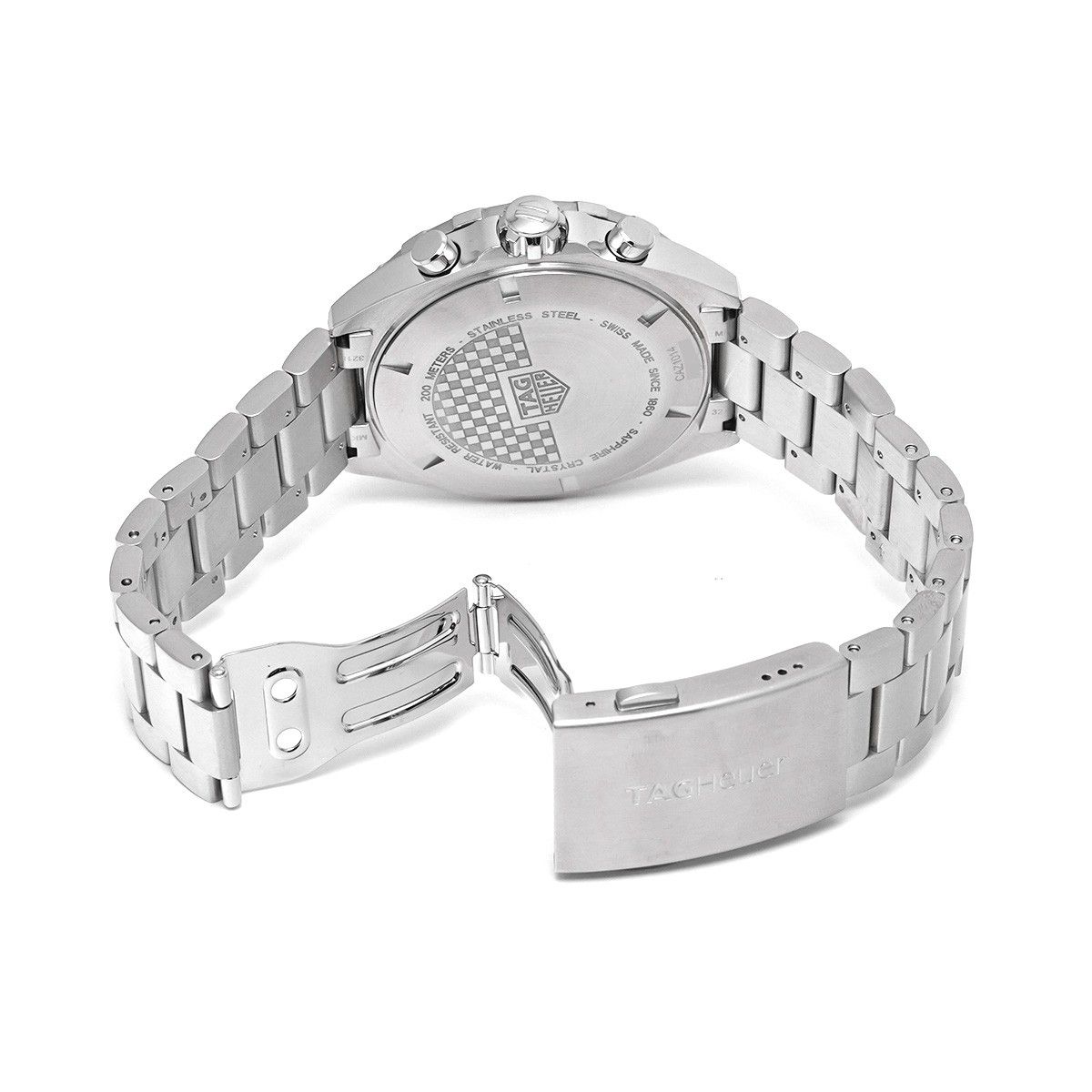 Stainless Steel Case Stainless Steel Bracelet Quartz Movement Sapphire Crystal Blue Dial Luminous Hands And Markers Blue Bezel With Tachymeter Scale Chronograph Function Date Displays Screw In Crown Screw In Case Back Deployment Clasp 200M Water Resistance