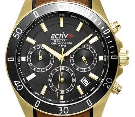Westar Activ Chronograph Leather Strap Black Dial Quartz 90245GPN183 100M Men’s Watch