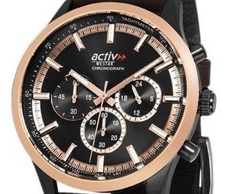 Westar Activ Chronograph Leather Strap Black Dial Quartz 90265BPN603 100M Men’s Watch