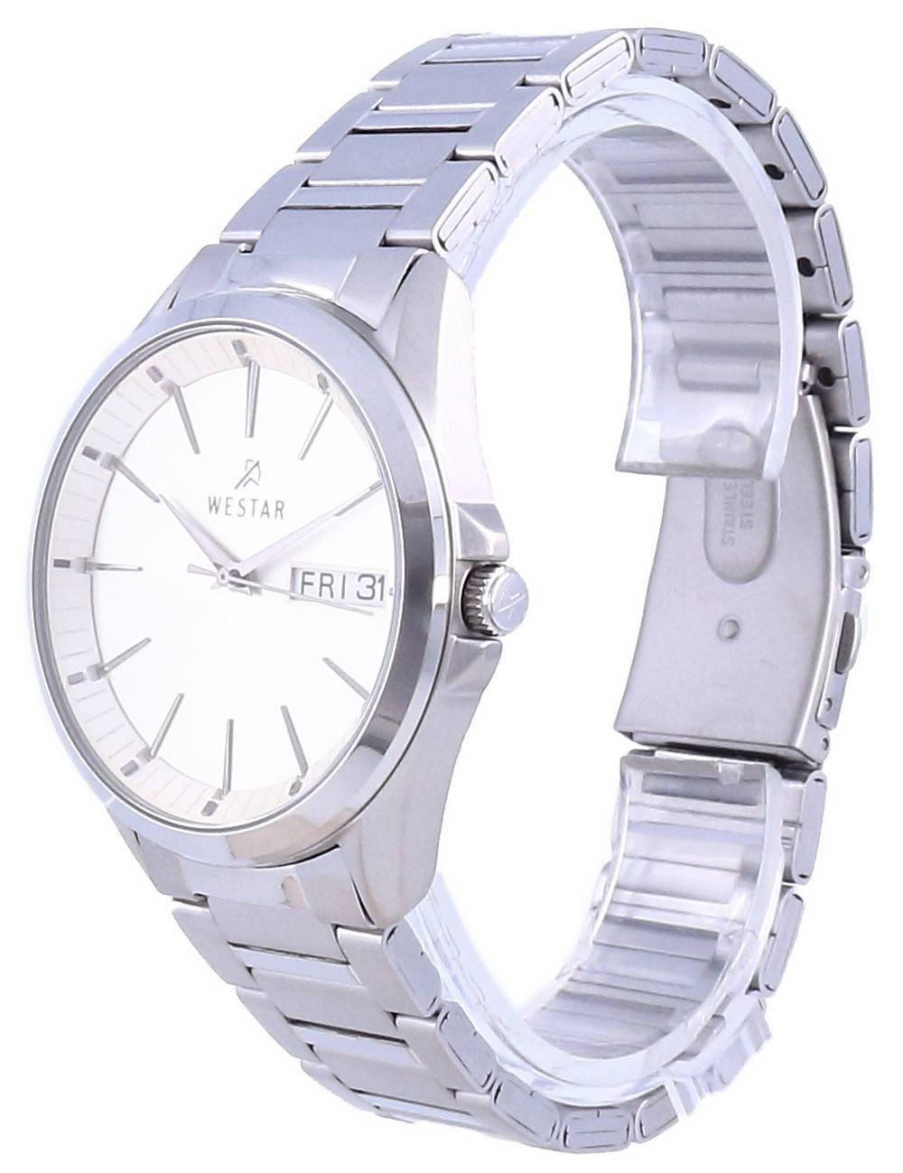 Stainless Steel Case Stainless Steel Bracelet Quartz Movement Caliber: 3HDD Mineral Crystal Champagne Dial Analog Display Day And Date Display Solid Case Back Deployment Clasp 50M Water Resistance