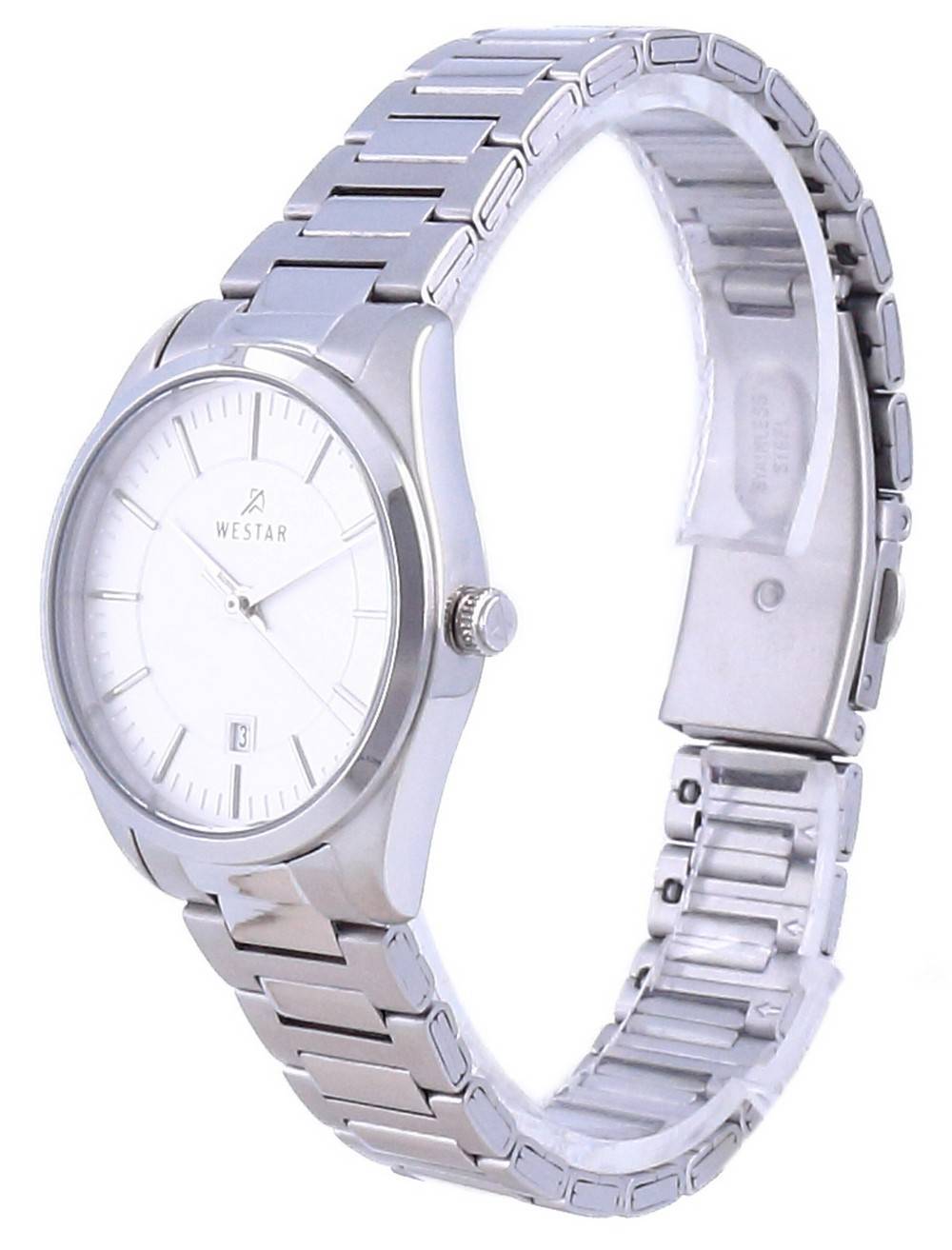 Stainless Steel Case Stainless Steel Bracelet Quartz Movement Caliber: 3HD Mineral Crystal Silver Dial Analog Display Date Display Solid Case Back Deployment Clasp 50M Water Resistance