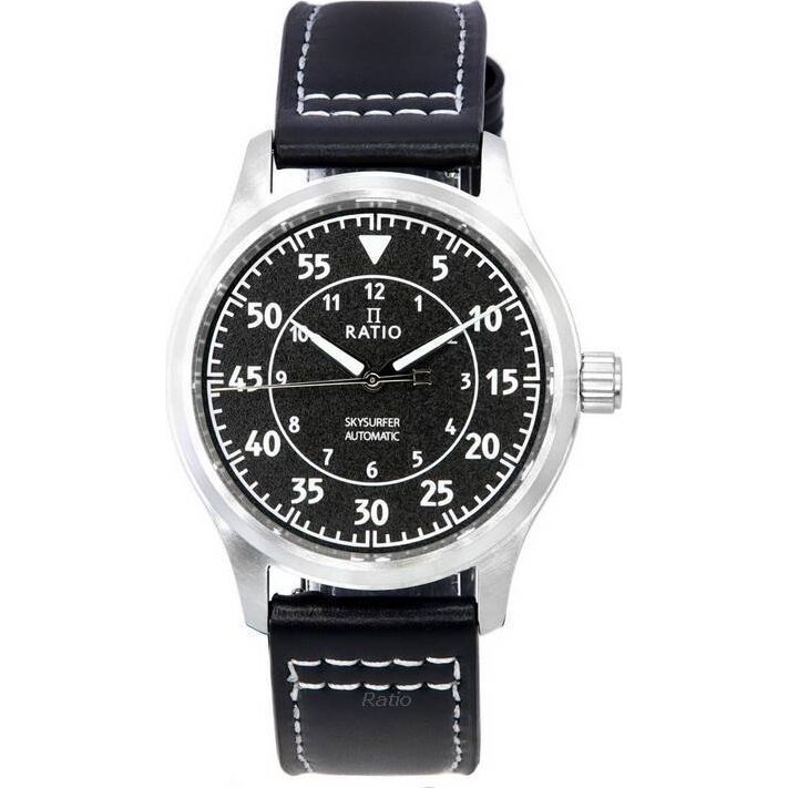 Ratio Skysurfer Pilot Black Textured Dial Leather Automatic Rts320 200m Men’s Watch