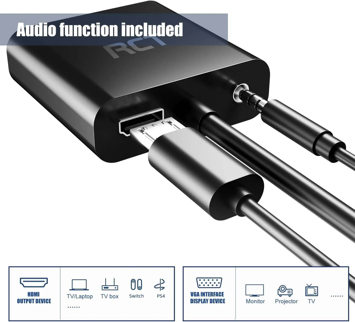 RCT HDMI to VGA (M to F) adapter with audio.