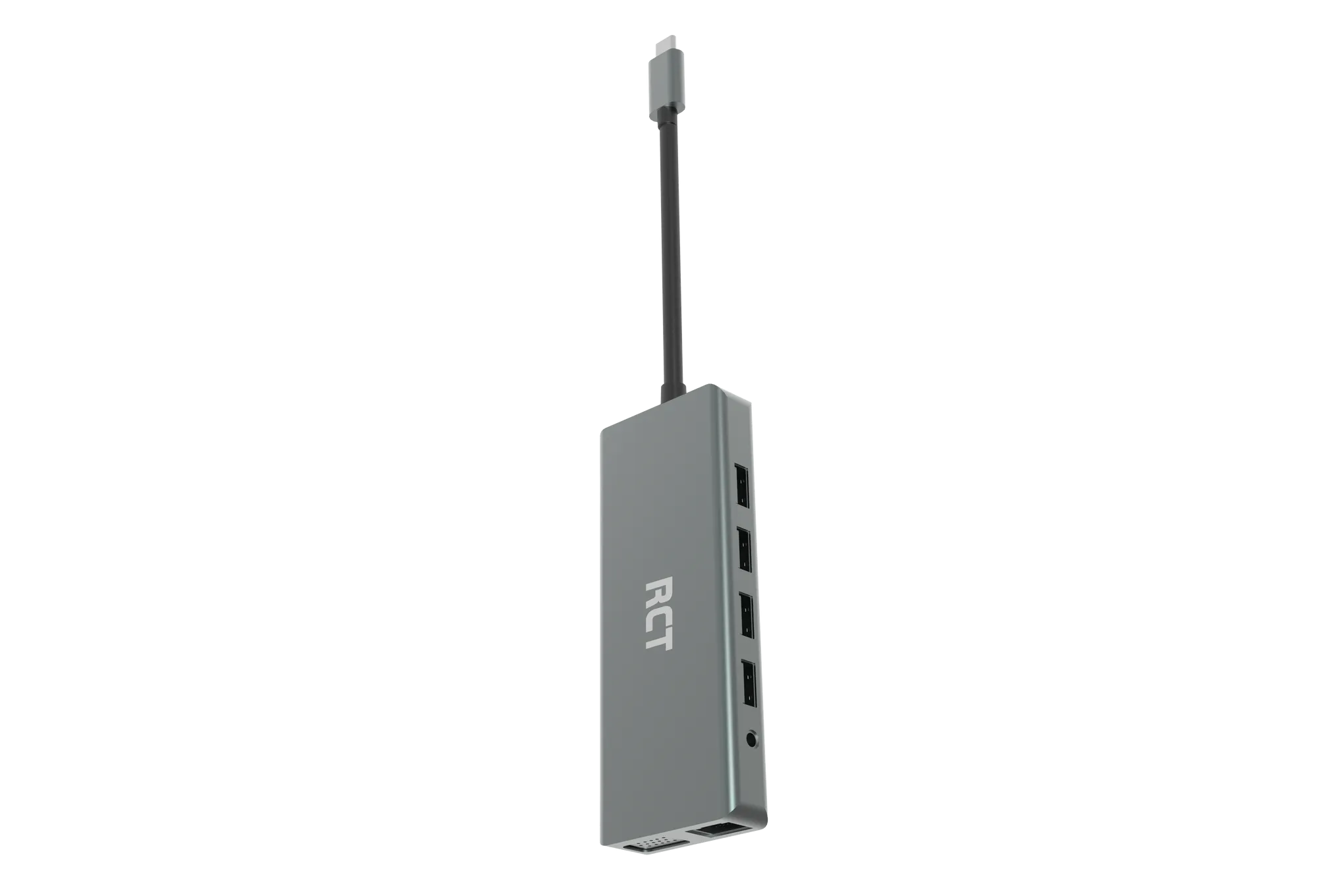 RCT compact 12-in-1 USB Type C hub with 2 HDMI; 1 VGA; 3 USB 3.0; 1 USB 2.0; 1 RJ45; PD; Audio; SD & microSD card reader
