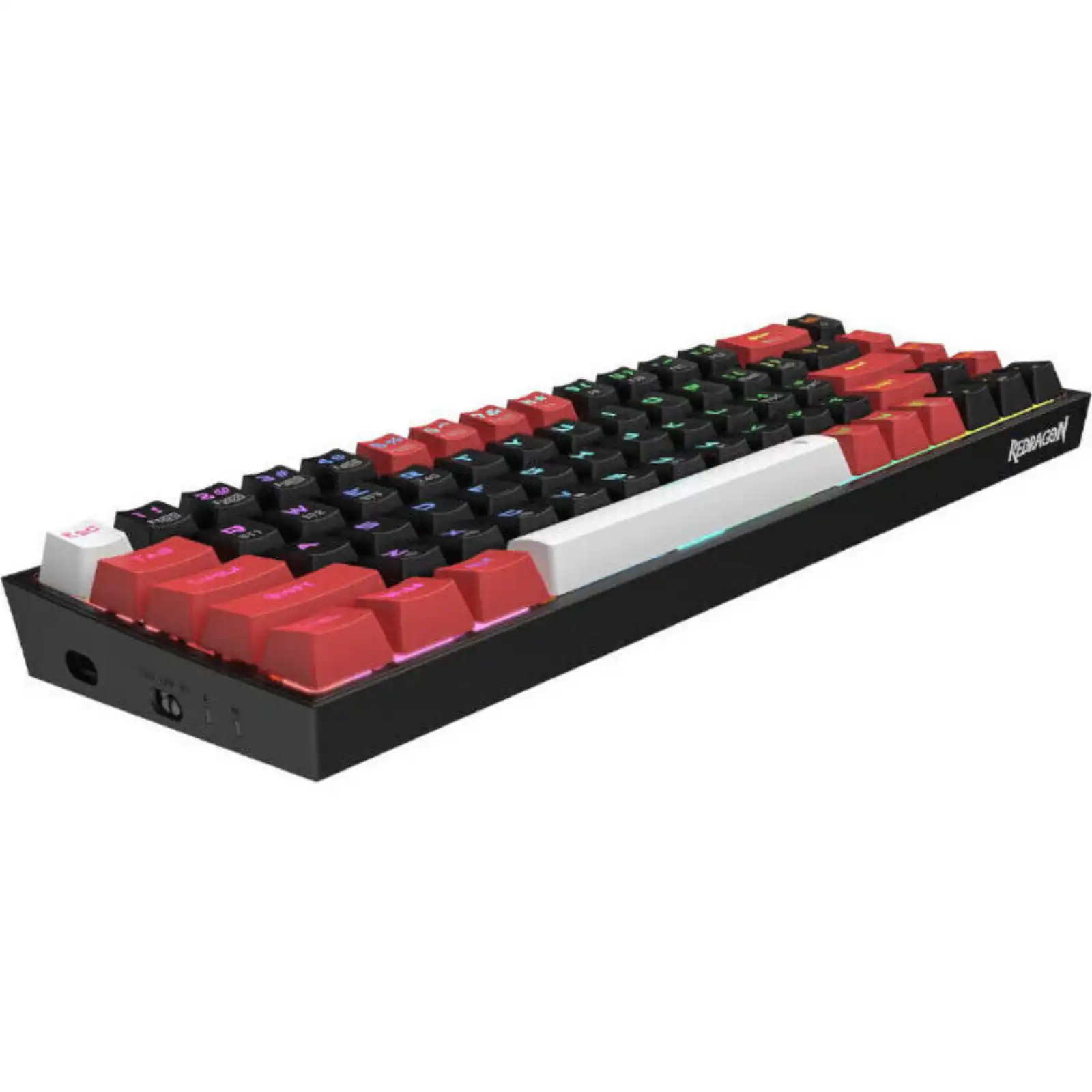 The Redragon K631 CASTOR PRO 65% Wireless RGB Gaming Keyboard features a compact 65% layout with 68 keys to enhance your gaming experience. Its ultra-compact and lightweight design frees up precious desk space for less clutter to keep your work area tidy and more manageable. It comes equipped with OUTEMU Red Switches that give you a linear feeling and a quiet-sounding experience. The switches are also hot-swappable, allowing you to fully customize your typing experience. The CASTOR PRO connects to your PC in 3 different ways thanks to its 2.4GHz wireless connection, Bluetooth 5.0 and a high-speed USB Type-C cable to ensure you are gaming at the highest levels with the least amount of input lag. It also comes with 20 preset modes for its vibrant RGB backlighting so you are free to choose what style you want, depending on your mood.