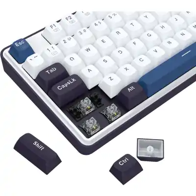Equipped with an upgraded hot-swappable socket, the K689 supports future switch upgrades or customizations with ease. Whether you’re exploring tactile, clicky, or linear switch types, this keyboard provides the versatility to tailor your setup to your exact preference. The dual-stage adjustable feet allow for comfortable wrist positioning, while the PBT mixed keycaps in three colors add a touch of personalization to your desk. With a choice between White or Black chassis, the K689 makes a visual statement as bold as its performance.
